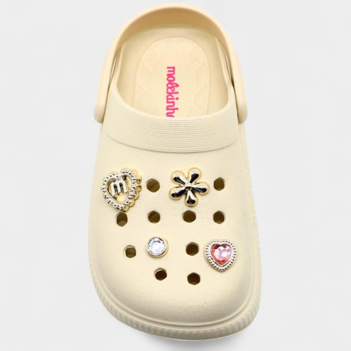 Nome:Babuche Infantil Molekinha Pins Menina - Creme