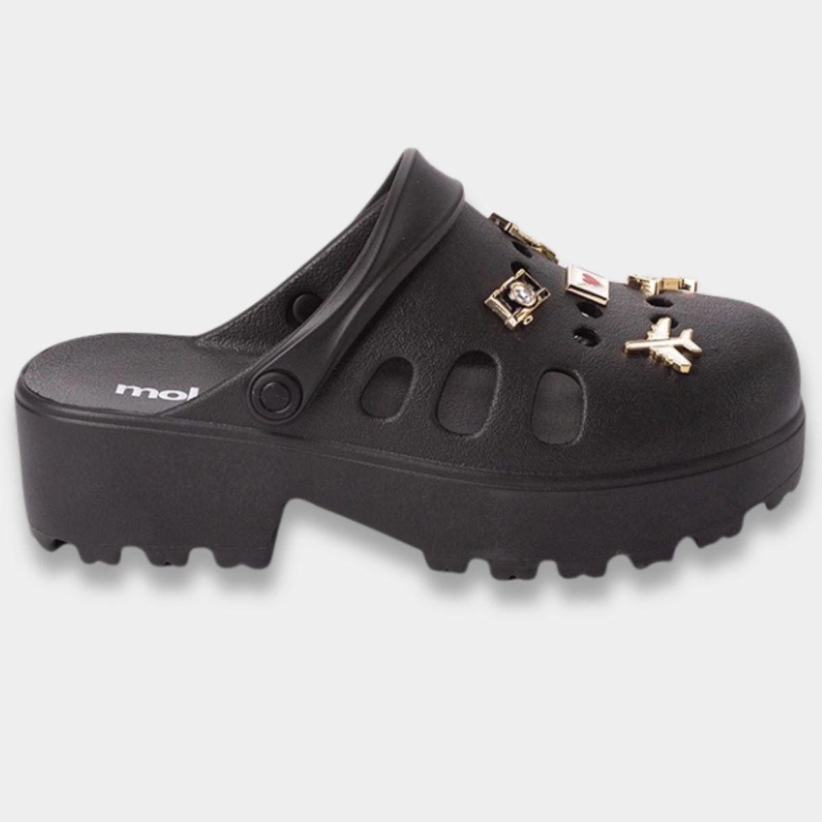 Babuche Moleca Salto Tratorado Pin Feminina - Preto