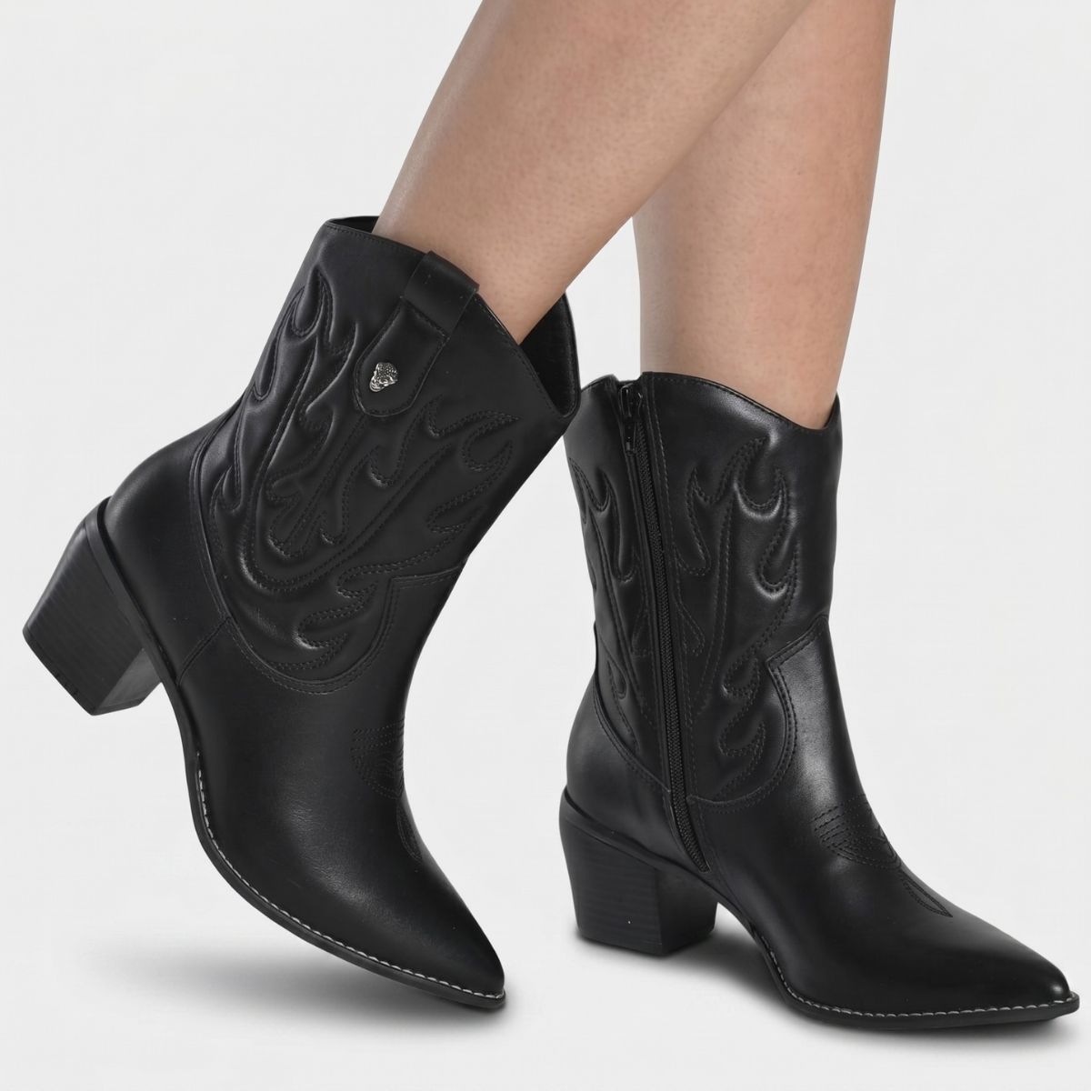 Bota Via Marte Western Cano Médio Feminina - Preto