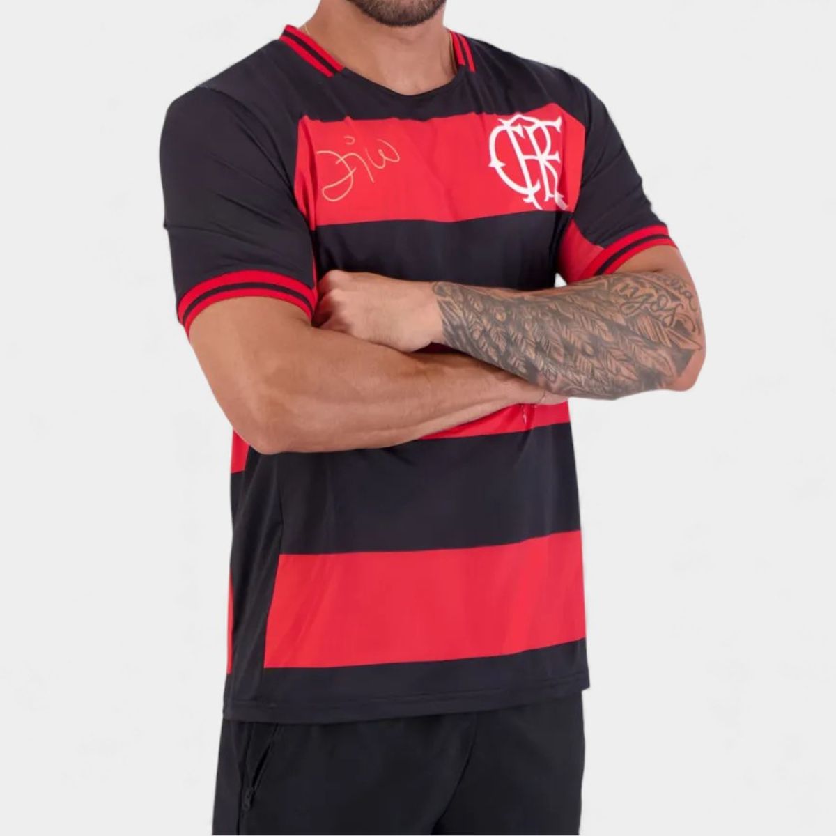Camisa Flamengo Zico Bench Raglan Masculina - Preto e Vermelho