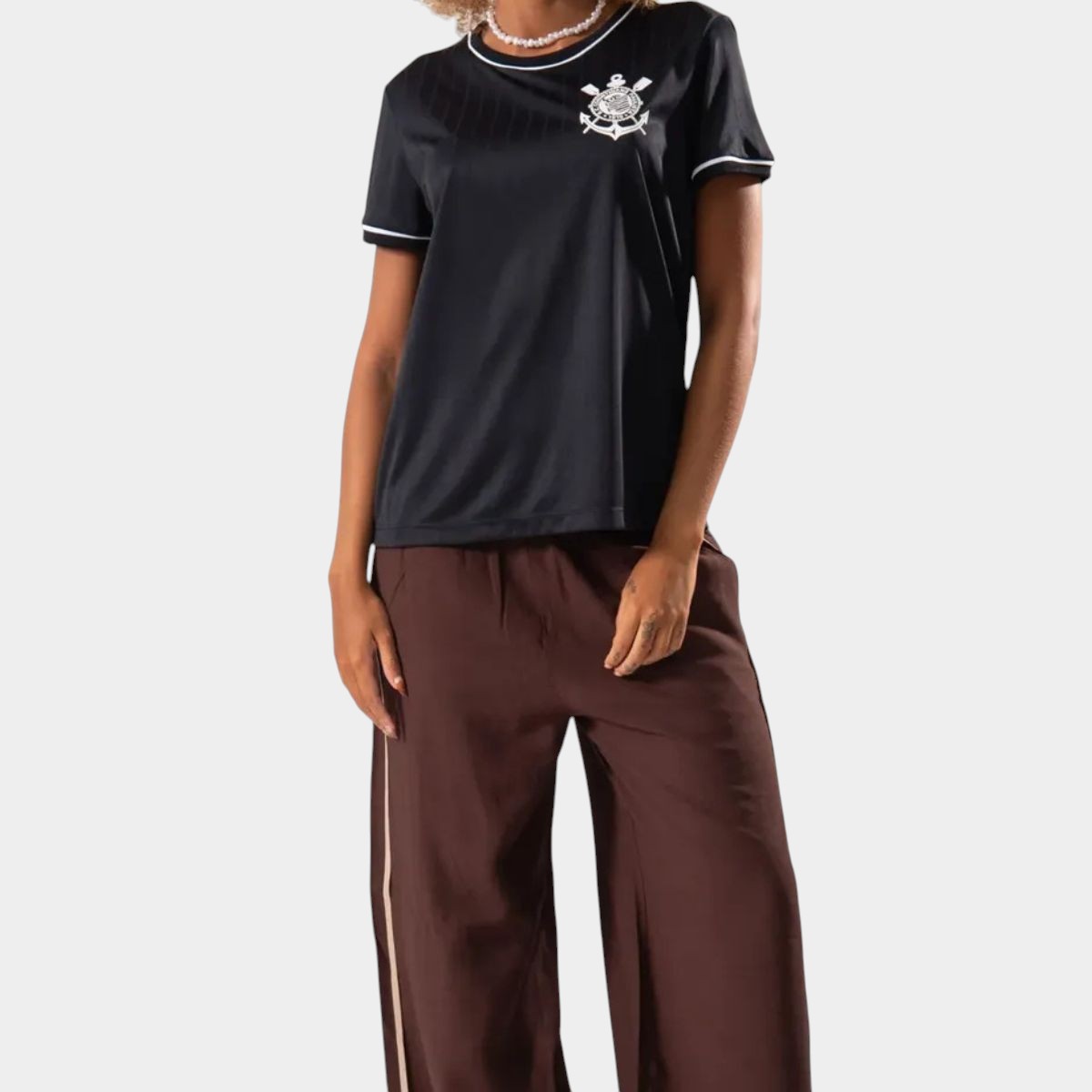 A Camiseta Corinthians Arte Feminina Preta é a escolha ideal para quem busca estilo, conforto e paixão pelo Sport Club Corinthians Paulista em um visual clássico, elegante e atemporal. Com design minimalista, modelagem feminina e acabamento premium, a peça oferece leveza, respirabilidade e um excelente caimento no corpo, garantindo conforto ao longo do dia. Perfeita para torcer, sair ou compor looks casuais, essa camiseta traduz o orgulho alvinegro com autenticidade, força e versatilidade em qualquer ocasião.
