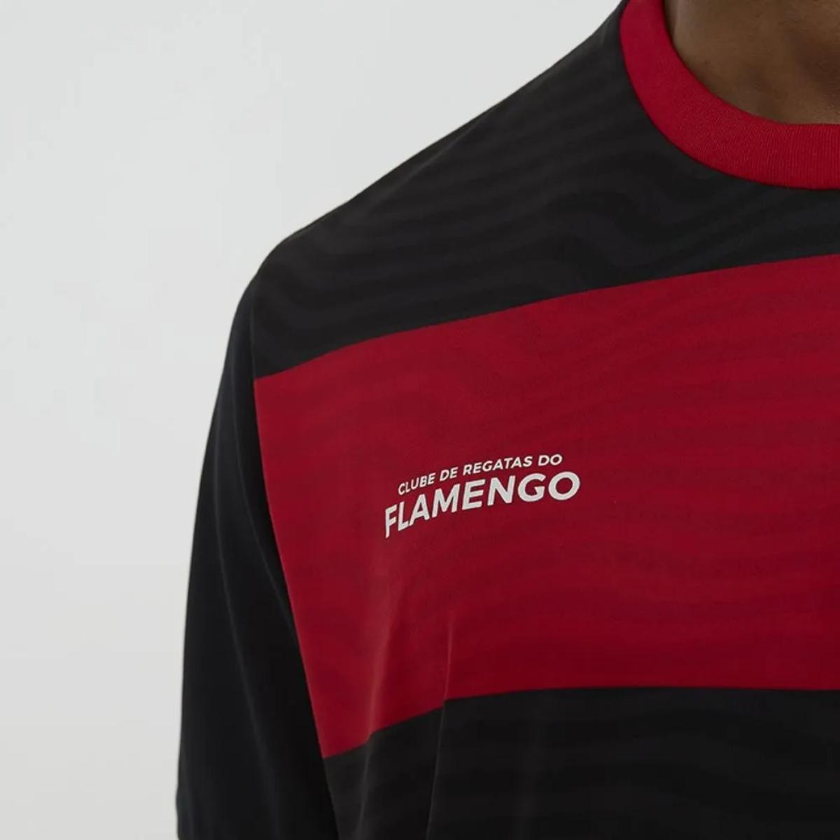 Camiseta rubro-negra confeccionada em Dry Max, tecido leve com excelente caimento, que proporciona conforto e alta respirabilidade, mantendo a pele seca. A peça traz estampa do escudo e assinatura do clube no peito, com detalhe em toque zero inspirado em ondas, que simula a vibração das listras rubro-negras, conferindo movimento e originalidade ao design.