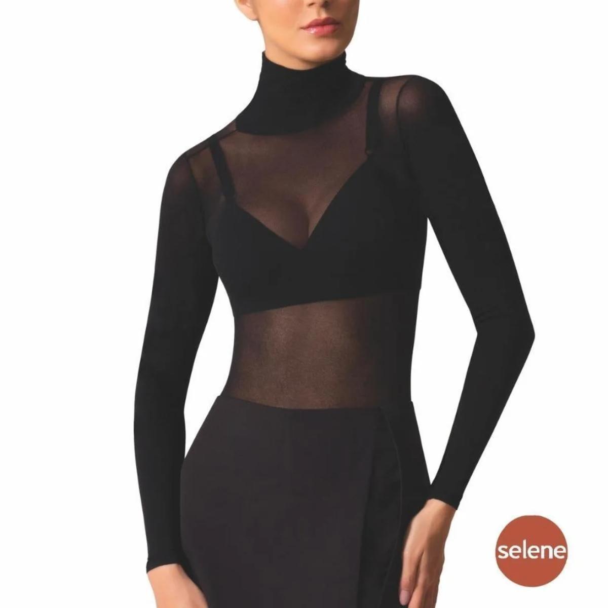 Camiseta Segunda Pele Selene Fio 40 Feminina - Preto