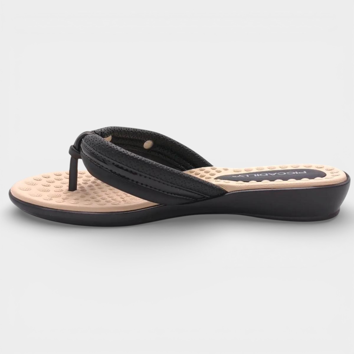Chinelo Anabela Piccadilly Detalhe Dourado Feminino - Preto