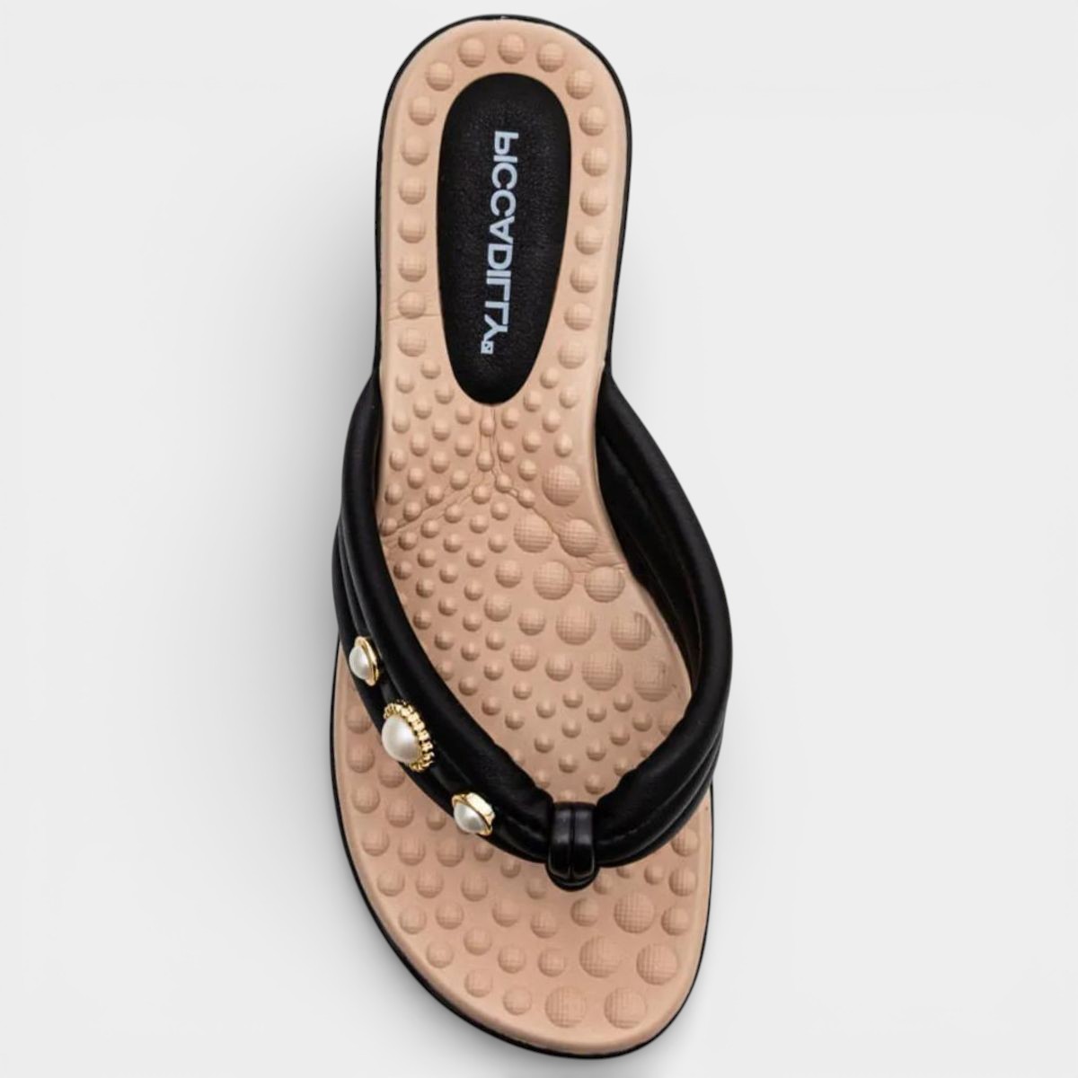 Chinelo Anabela Piccadilly Detalhes Perolados Feminino - Preto