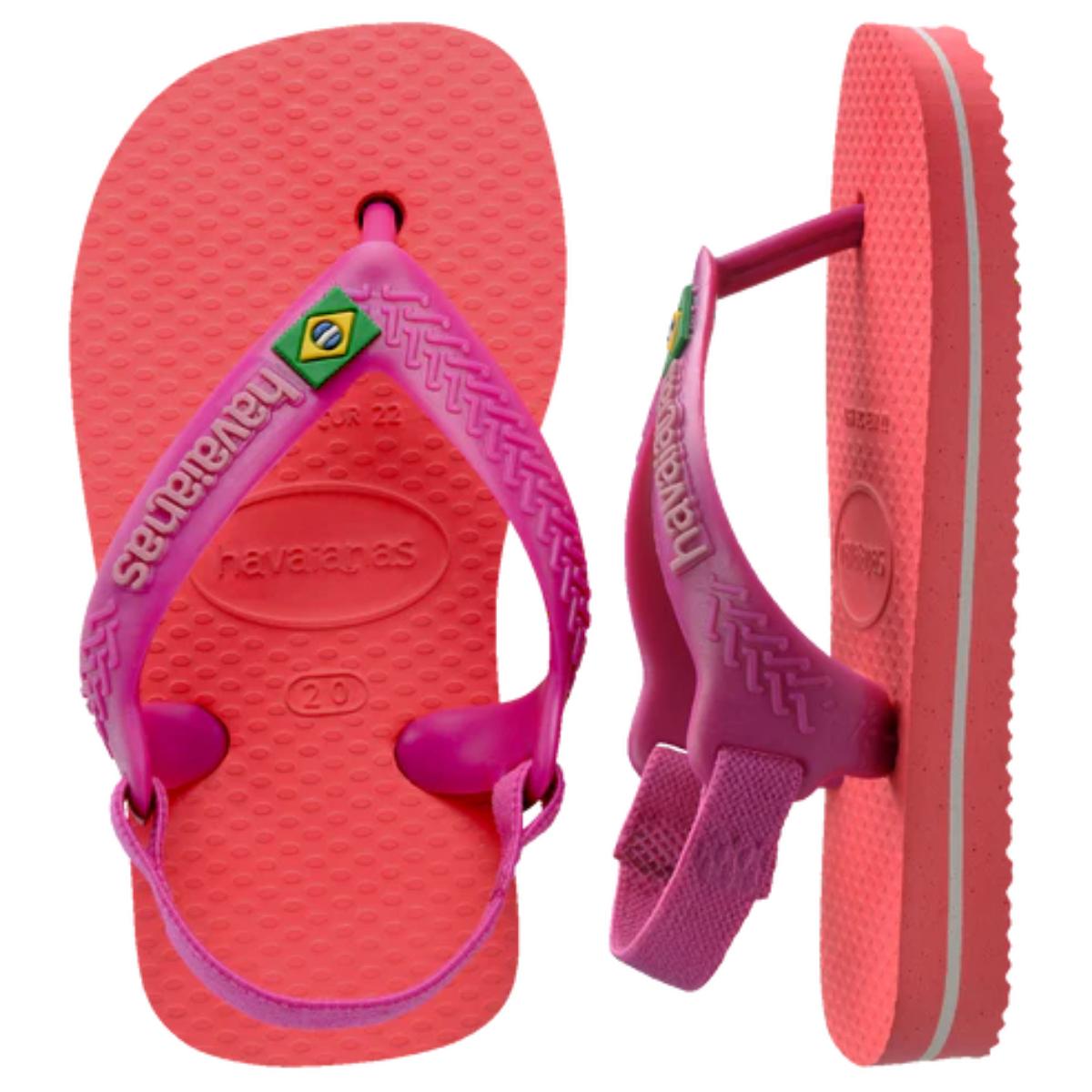 Chinelo Havaianas Baby Brasil Logo Menina - Coral e Roxo