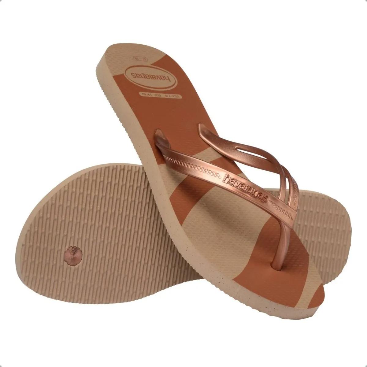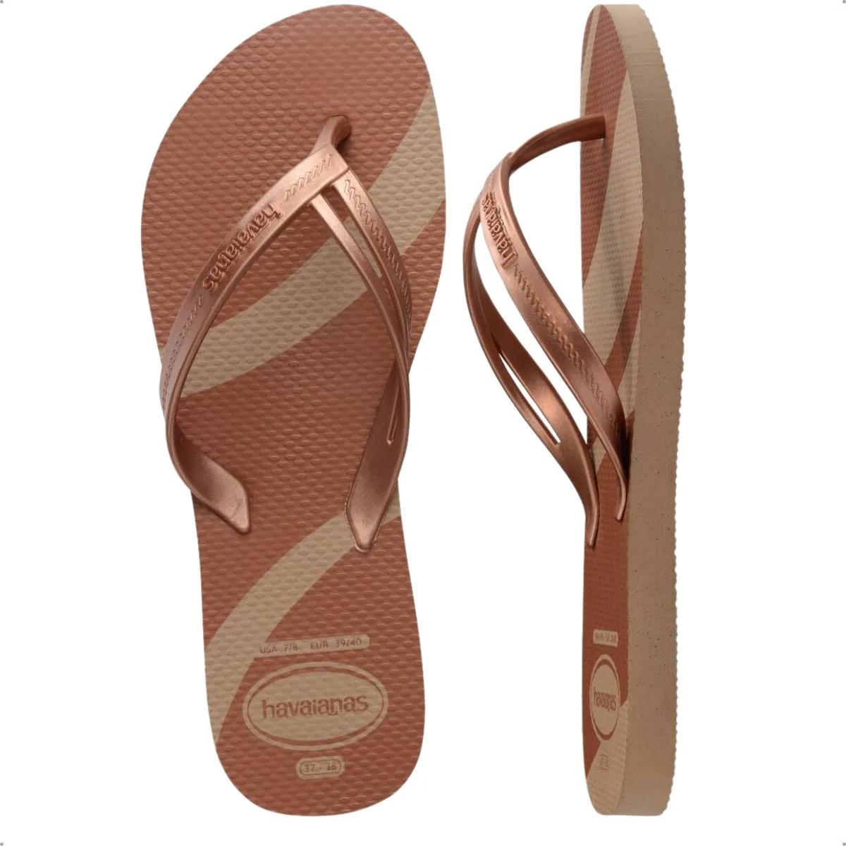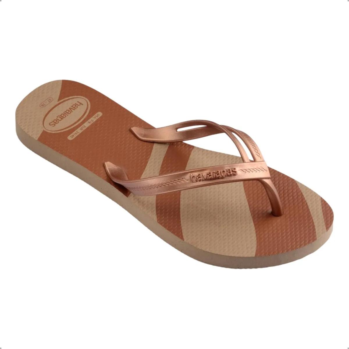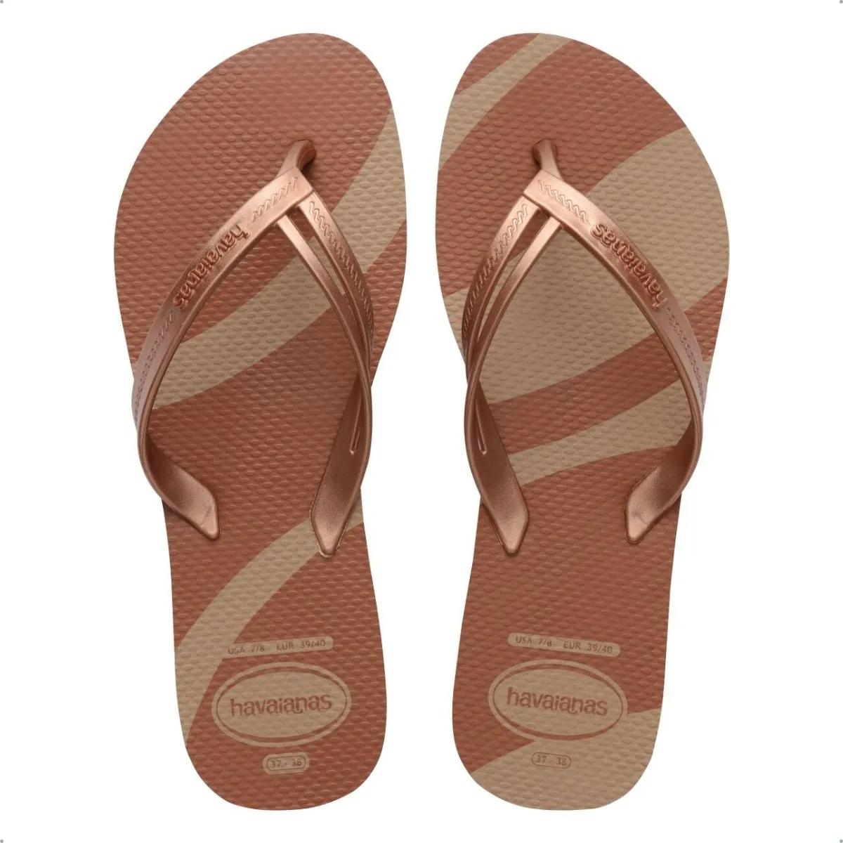 Chinelo Havaianas Elegance Print Metalizado Feminino - Marrom