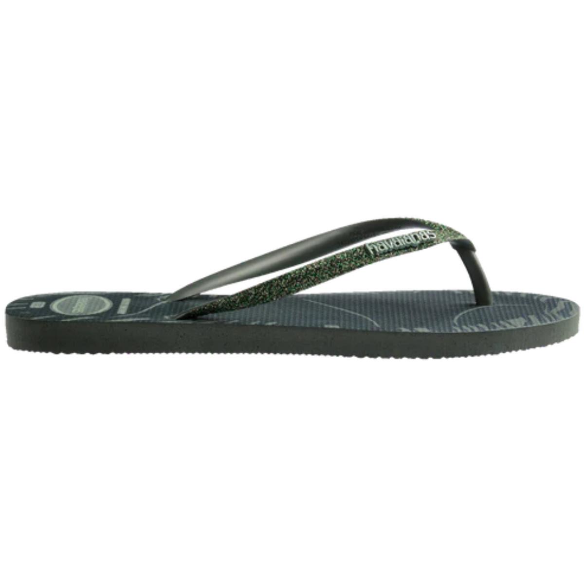 Chinelo Havaianas Slim Glitter Edge Feminino - Verde Oliva