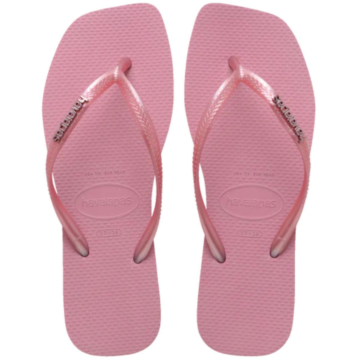 Chinelo Havaianas Slim Square Logo Metallic Feminino - Rosa