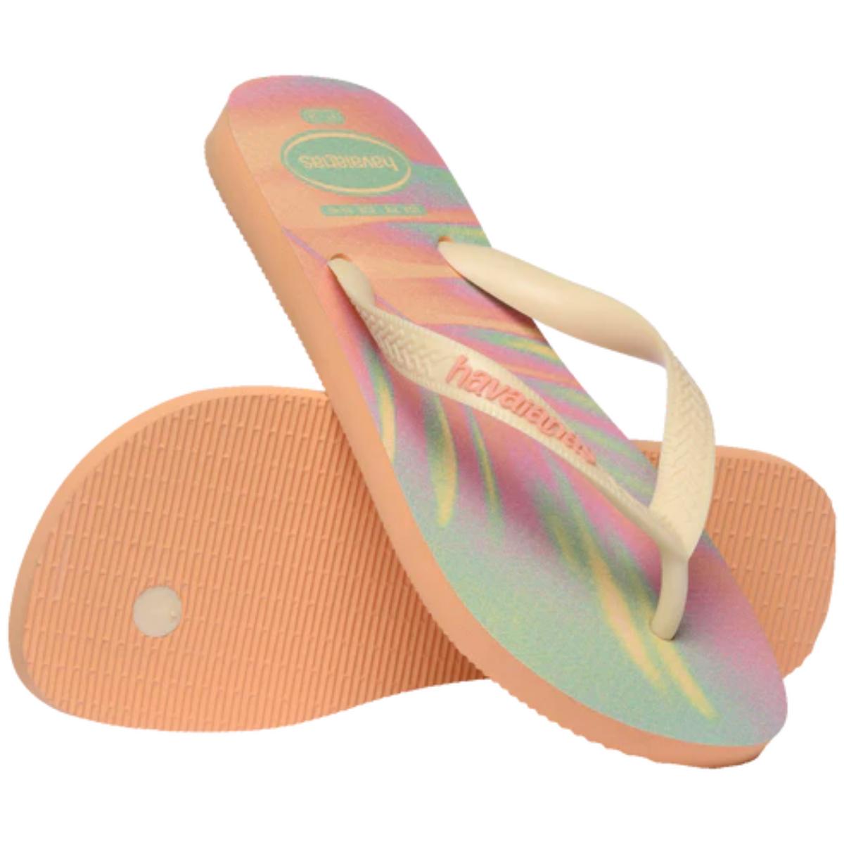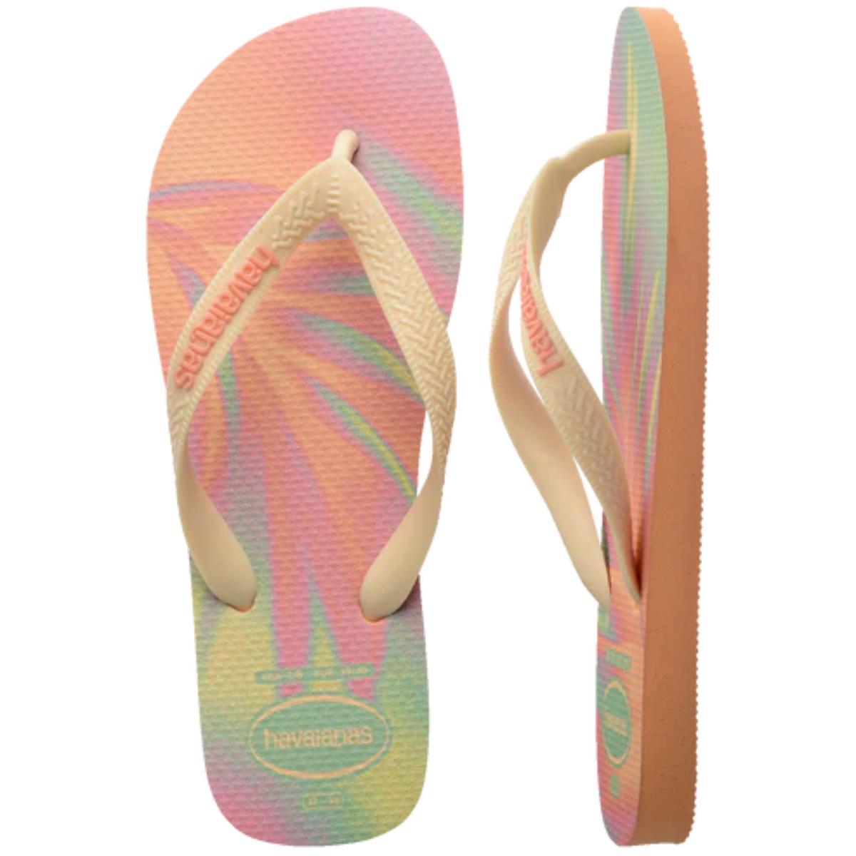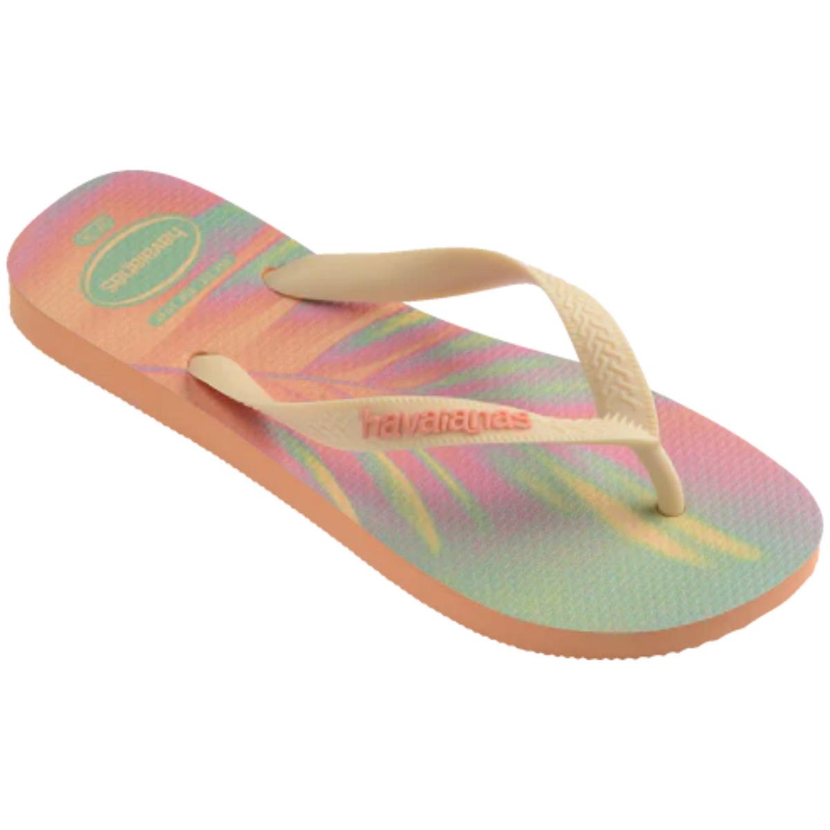 Colorido, divertido e com espírito jovem, esse é o chinelo Havaianas Top Fashion! Modelo top, com as tradicionais tiras e solado mais largos, essa sandália vem com duas modernas estampas abstratas inspiradas em folhagens. Em tons pastel, elas são coloridas e vibrantes. Além disso, as tiras possuem cores contrastantes e logo Havaianas em destaque. Confortável, o chinelo ainda é resistente à água!