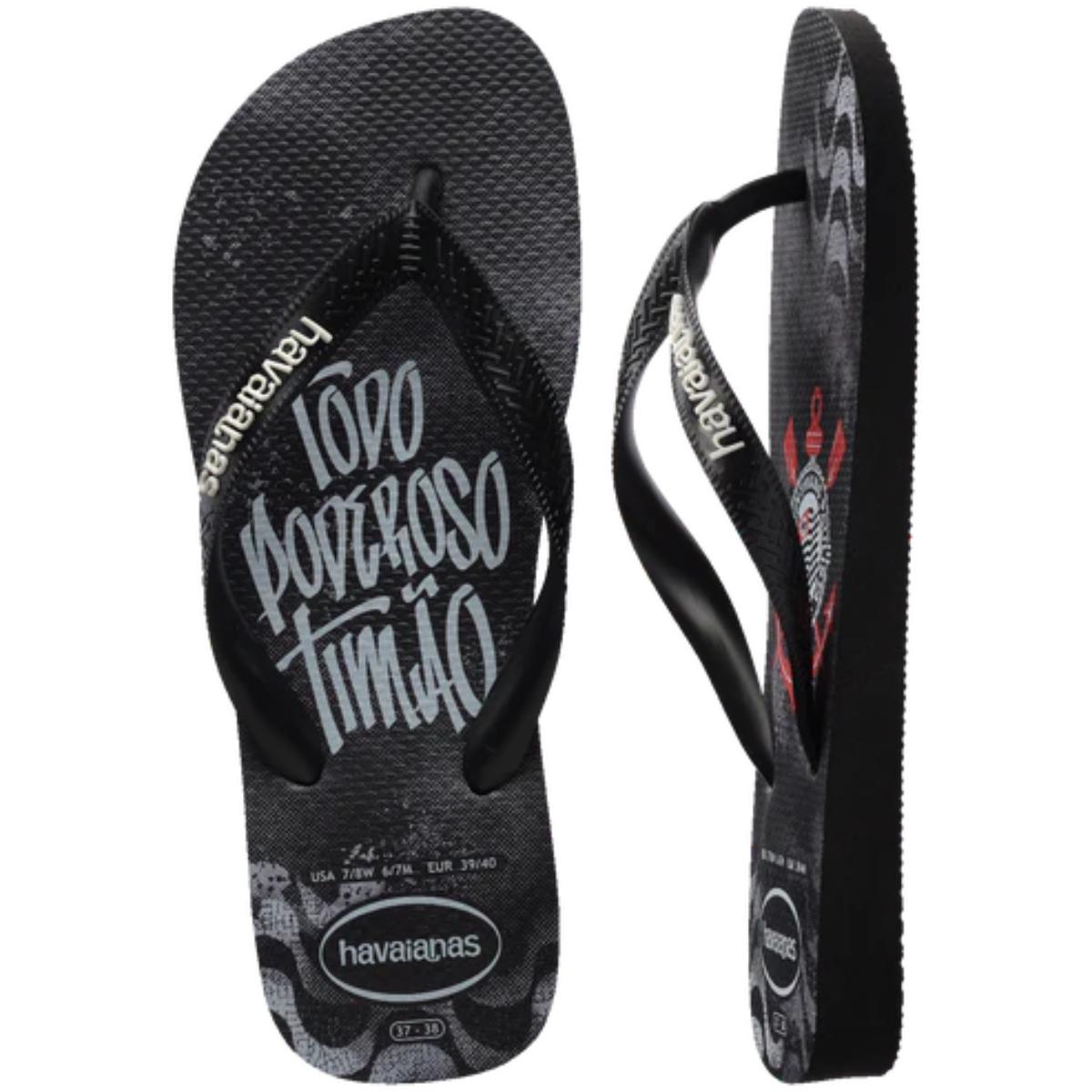 Nome:Chinelo Havaianas Top Times Corinthians Masculino - Preto e Branco
