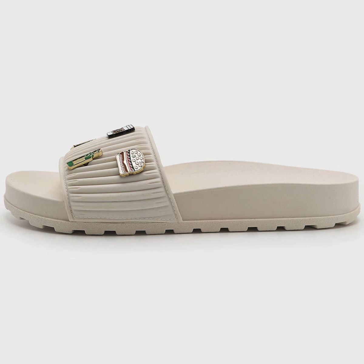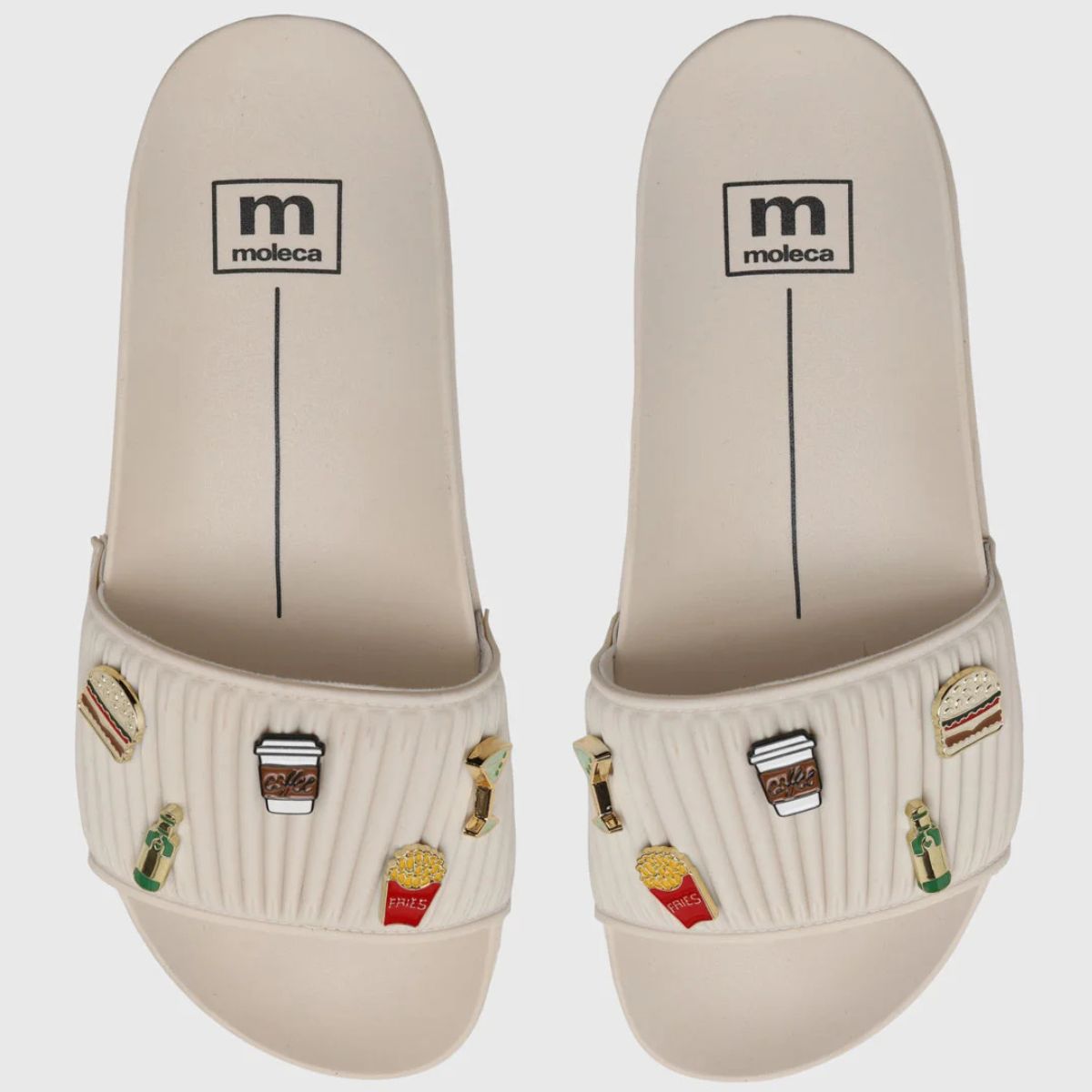 Nome:Chinelo Moleca Slide Pins Feminino - Off White