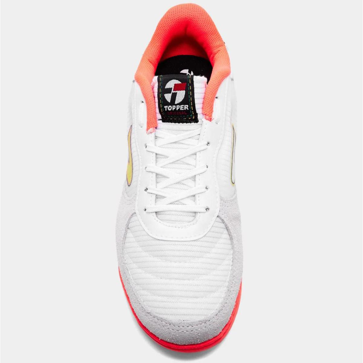 Chuteira Futsal Topper Letra IV Unissex - Branco e Amarelo