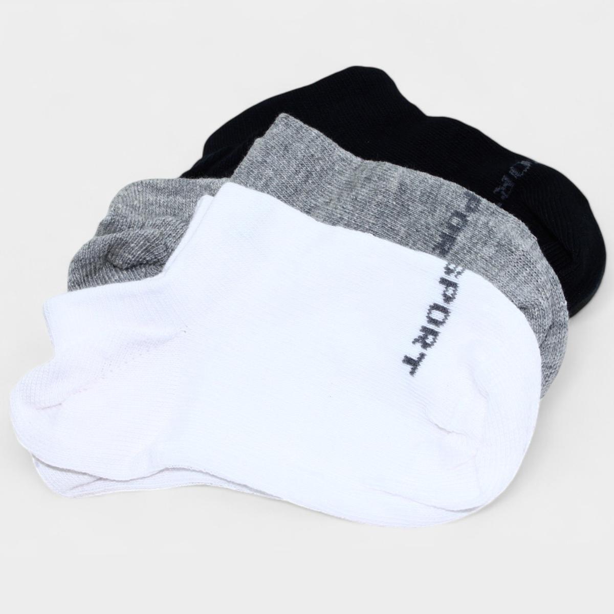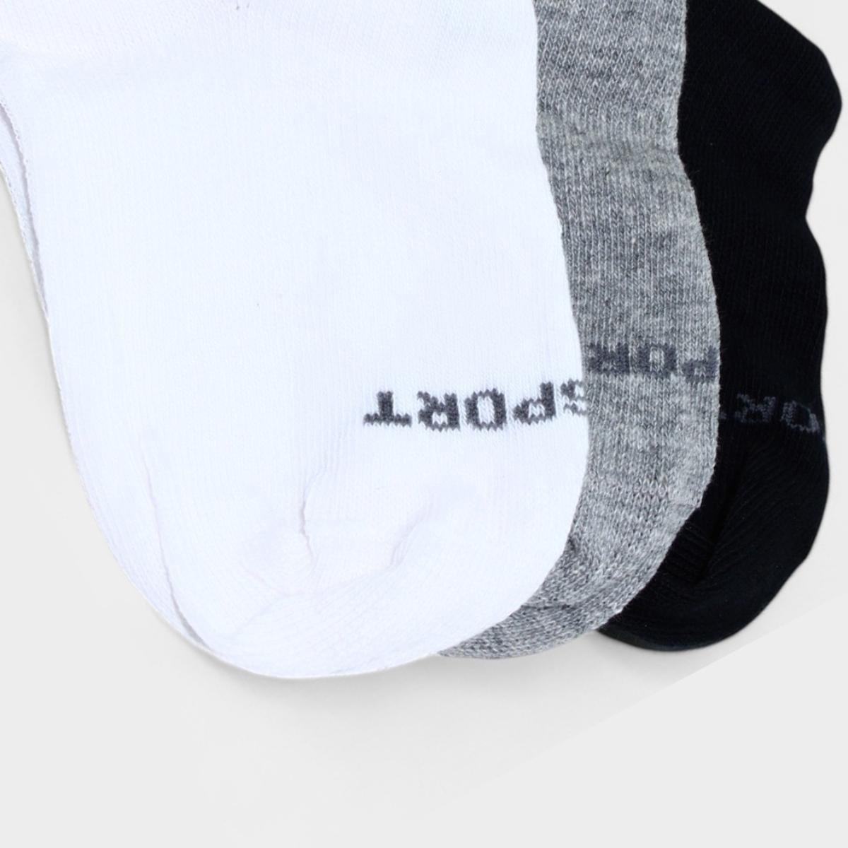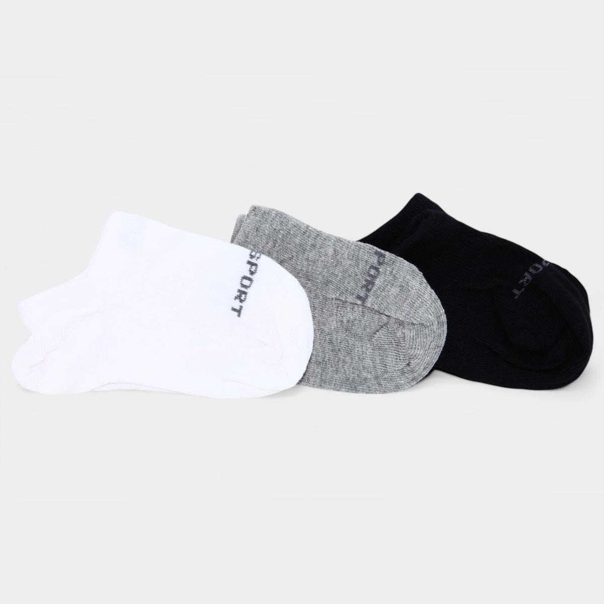 Nome:Kit 3 Pares Meia Cano Médio Lupo Kids - Branco e Cinza