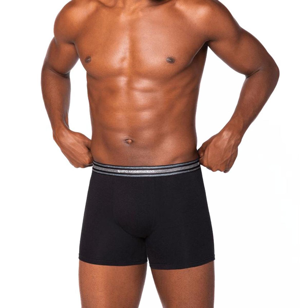 Kit Cueca Boxer Lupo Com Elastano 2 Peças - Preto e Grafite