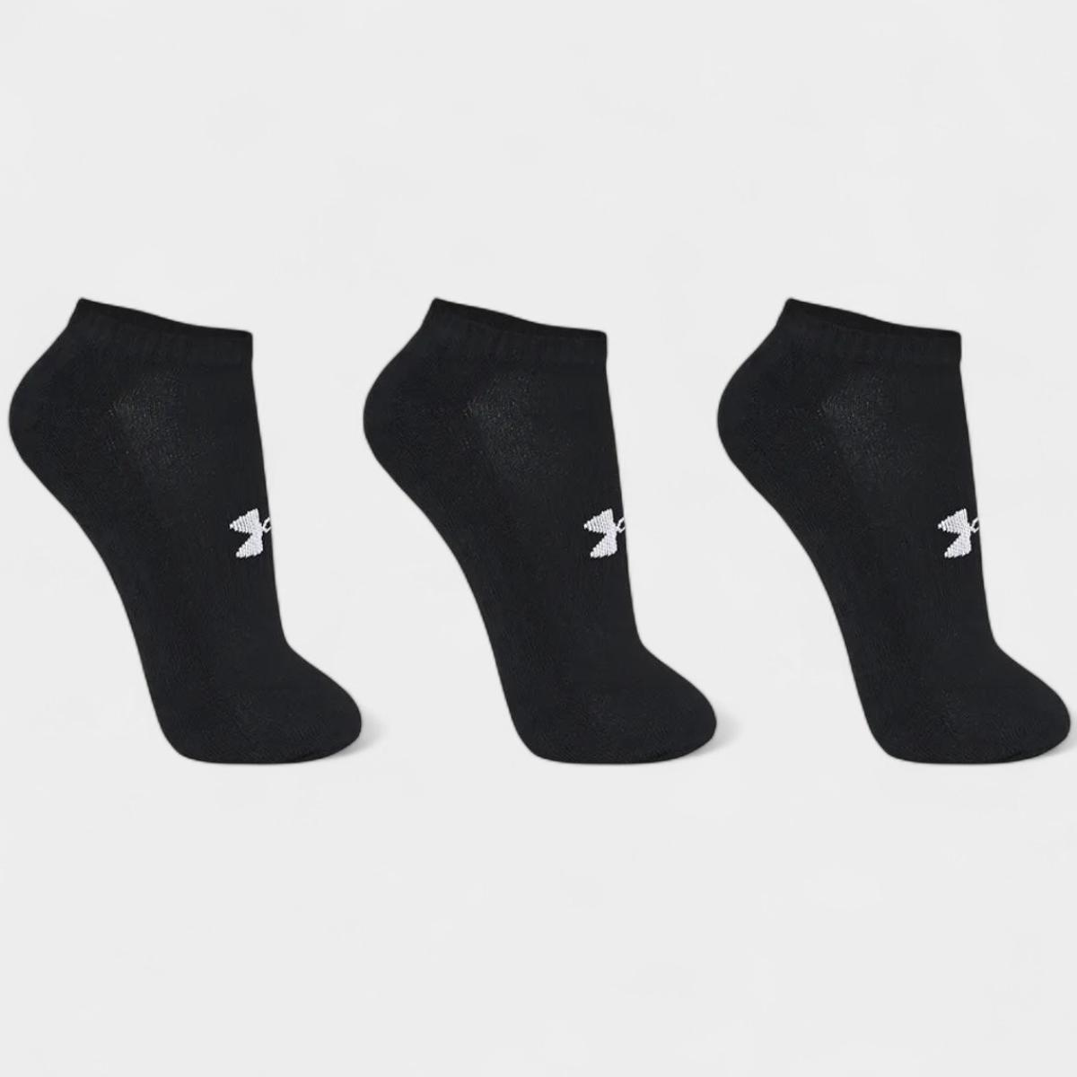 Kit Meia Under Armour Invisível Cotton No Show 3 Pares - Preto