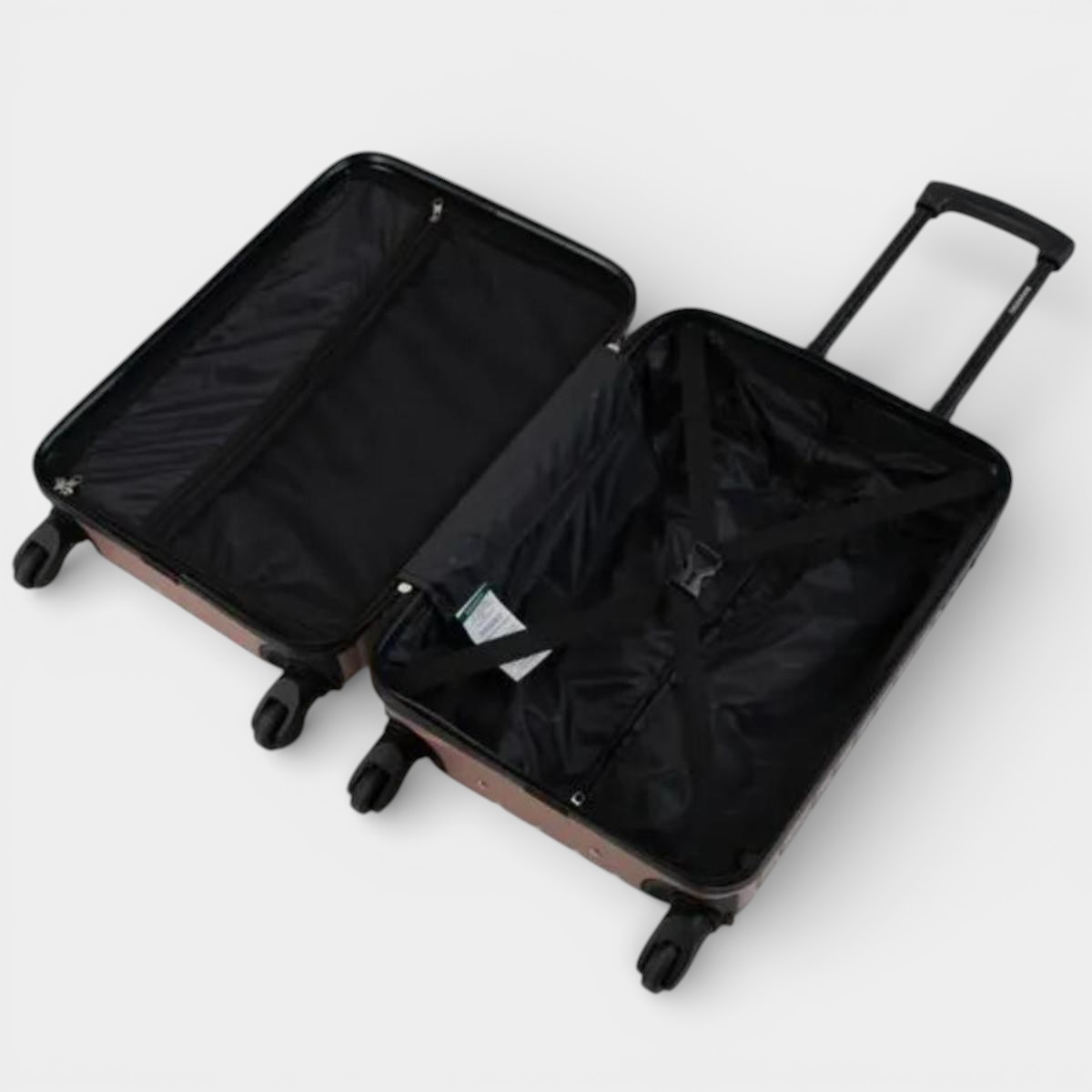 A mala Detroit é uma das queridinhas da Bagaggio! A Mala de Bordo detroit comprta até 10 kg e pode ir com você dentro do avião. Com o seu design elegante e clássico, conta com 4 rodas com giro de 360°, facilitando o transporte da mala. Para maior segurança, esse modelo conta com cadeado fixo, trazendo tranquilidade paras as suas viagens. Além disso, possui compartimentos em zíper e cinta para organizar melhor os seus pertences.