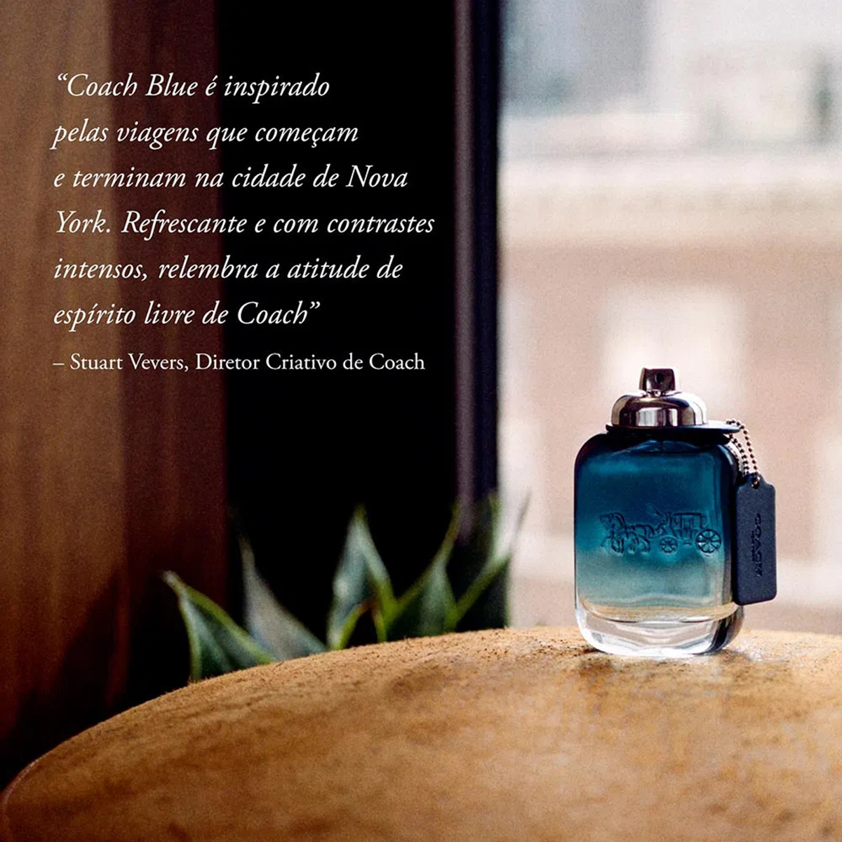 Coach Blue é inspirado pela liberdade e otimismo de uma viagem pelas estradas americanas. Revigorante e aromático, remete um céu azul, estradas abertas e brisa fresca.