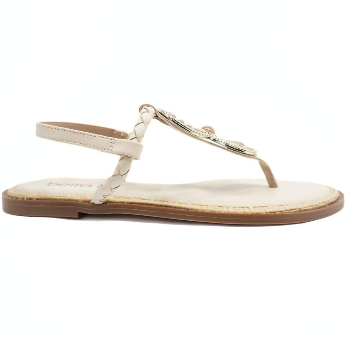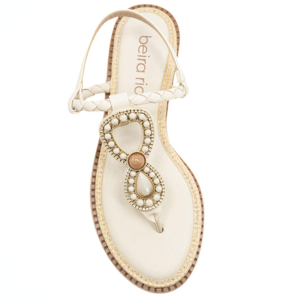 Rasteira Beira Rio Flat Pedraria Feminina - Creme