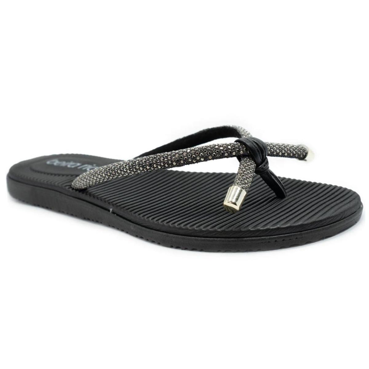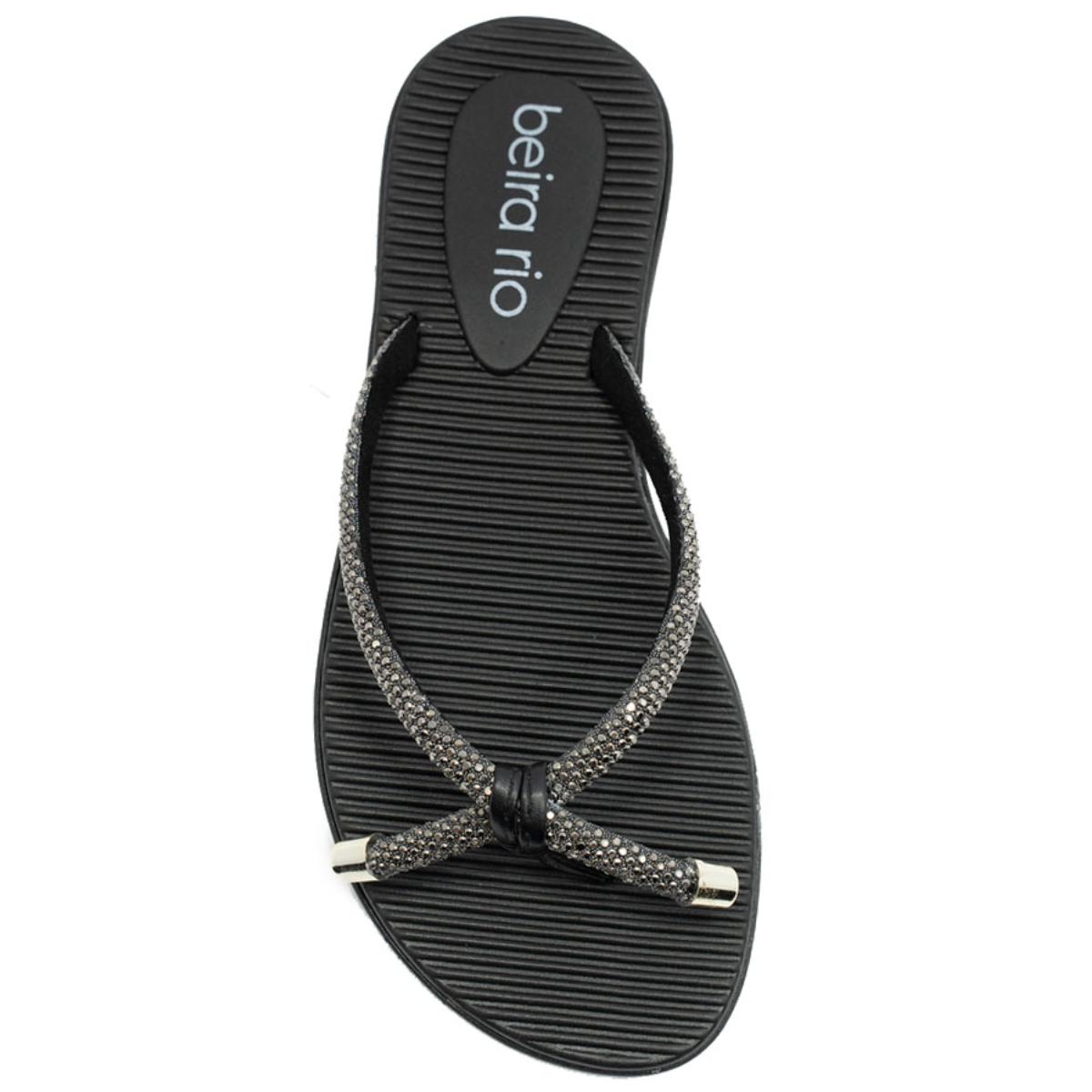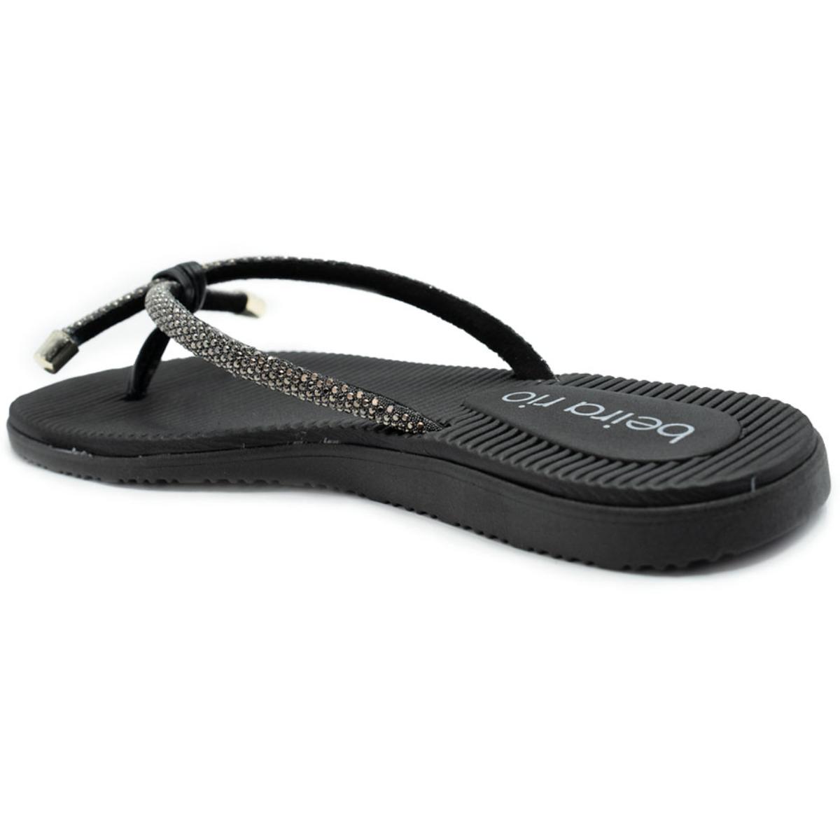 Rasteira Beira Rio Flatform Diamond Strass Laço Feminina - Preto