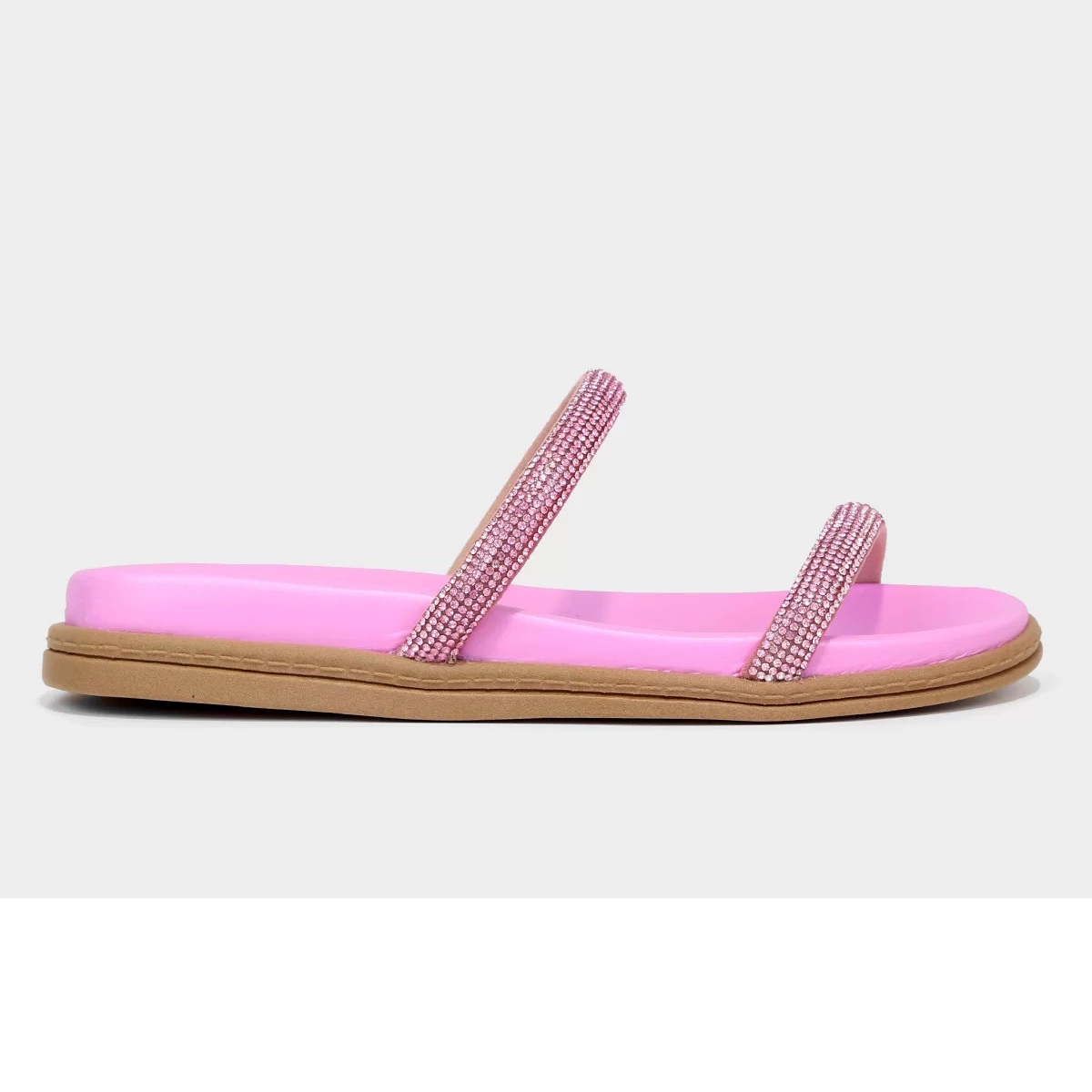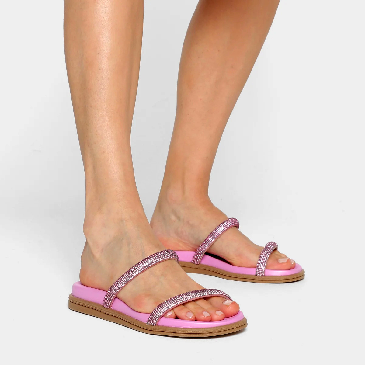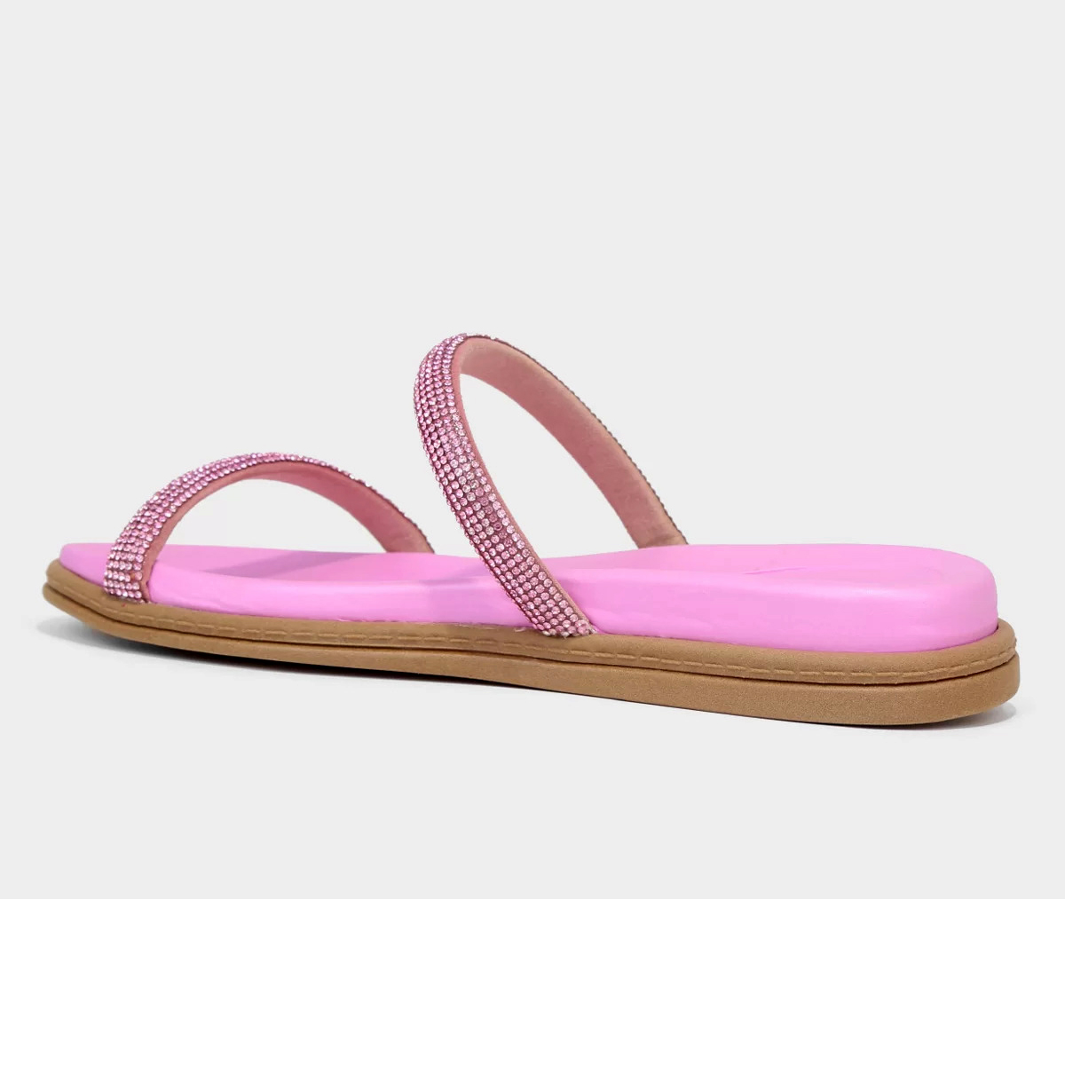 Rasteira Beira Rio Flatform Strass Feminina - Rosa