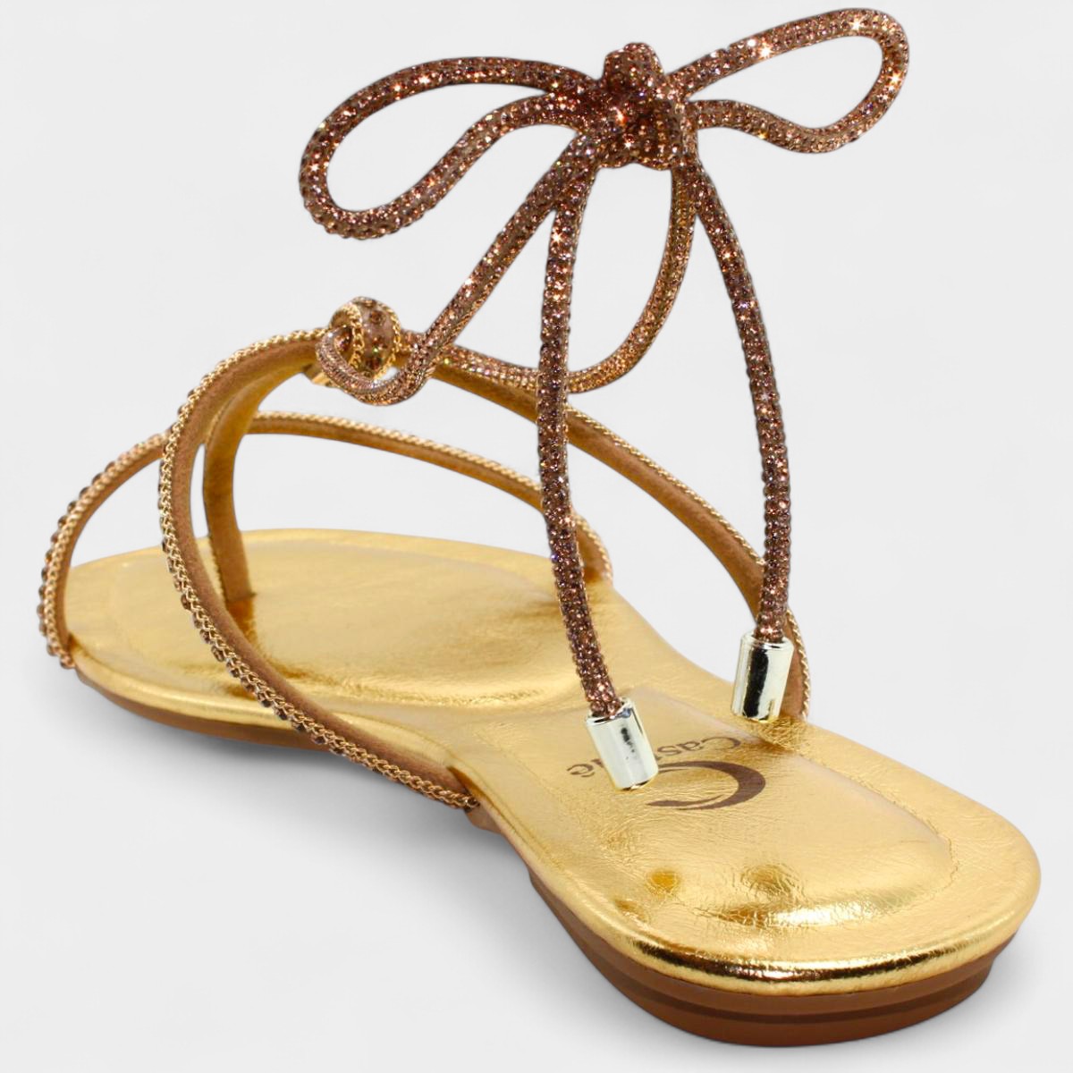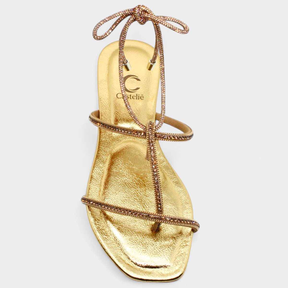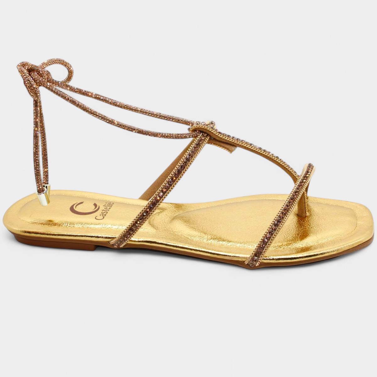 Rasteira Casteliê Strass Metalizada Amarração Feminina - Dourado