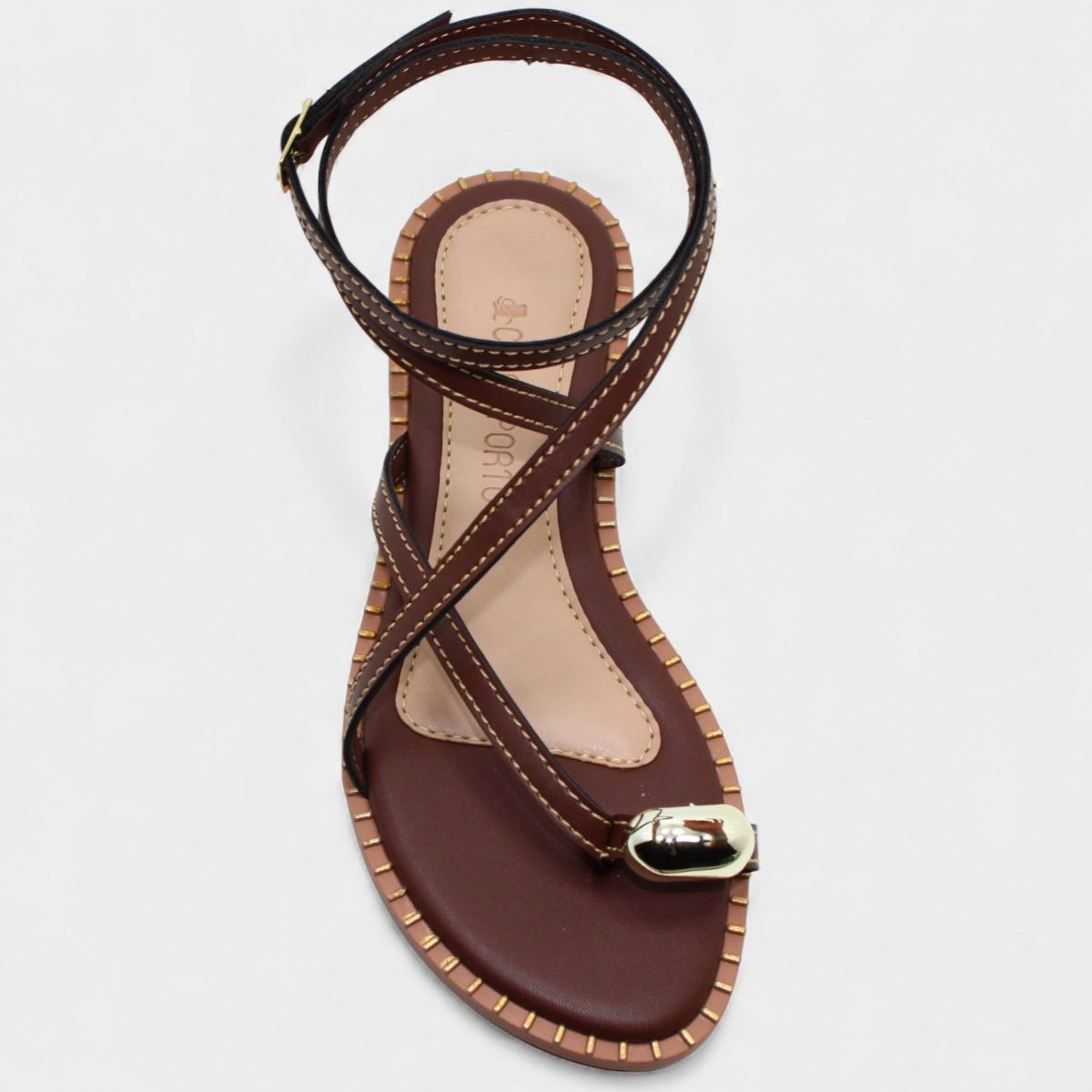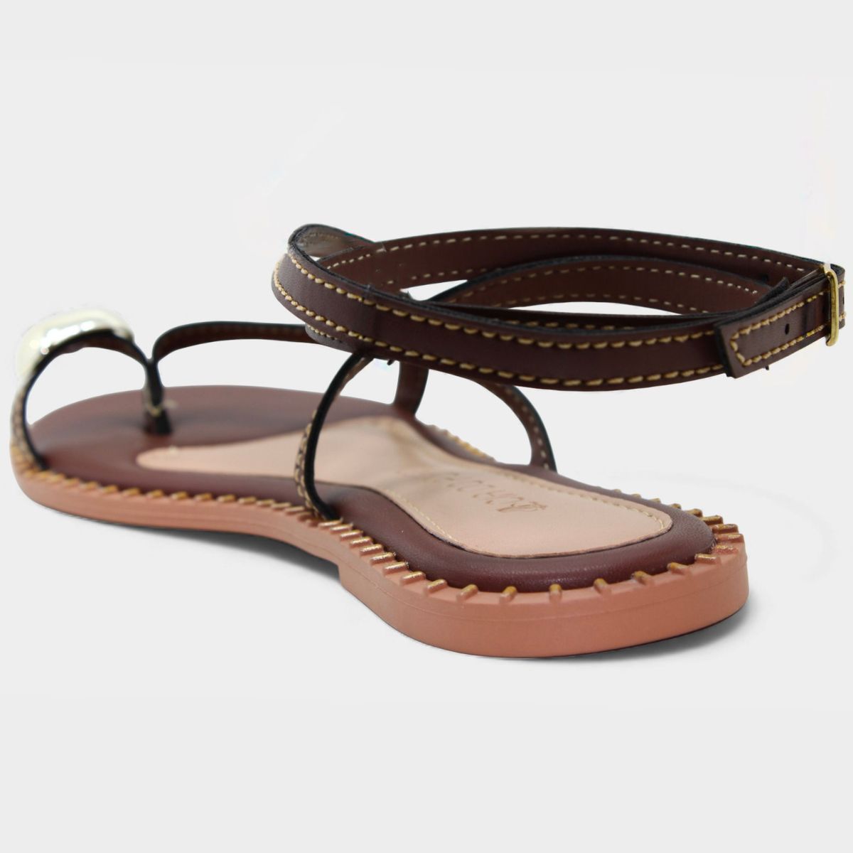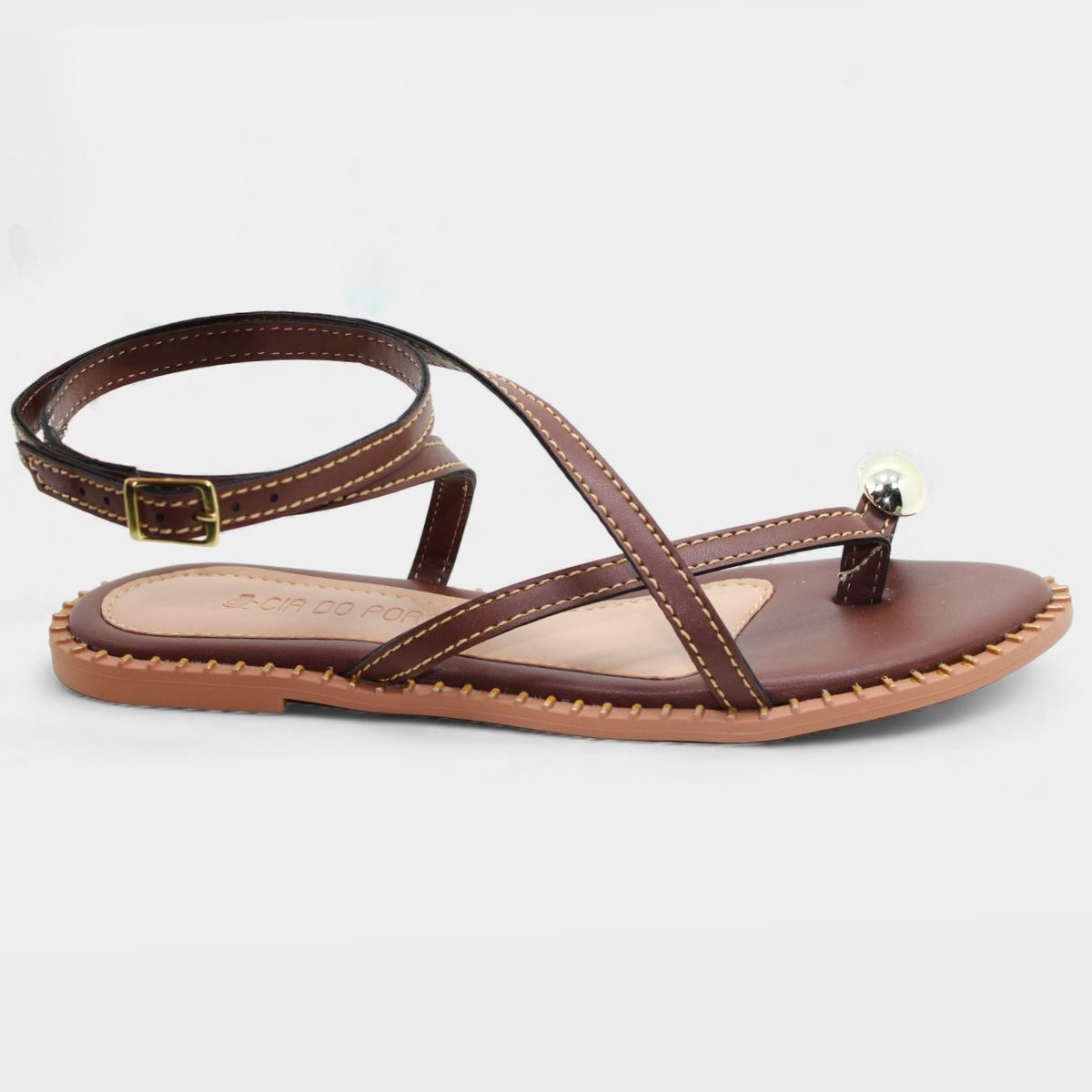 Rasteira Cia do Porto Amarração Detalhes Feminina - Marrom Escuro