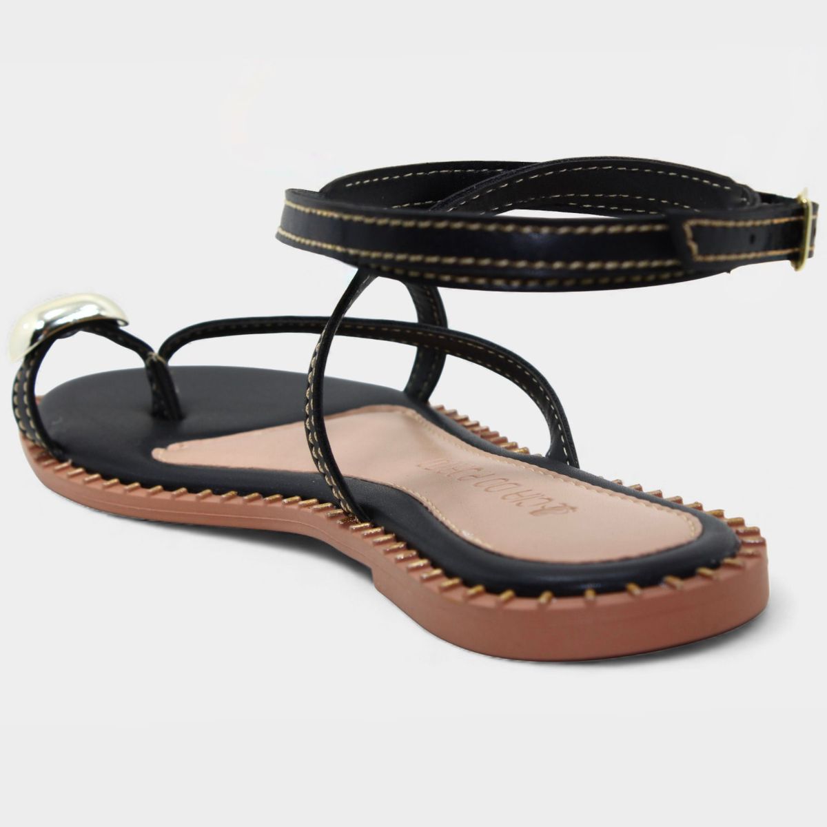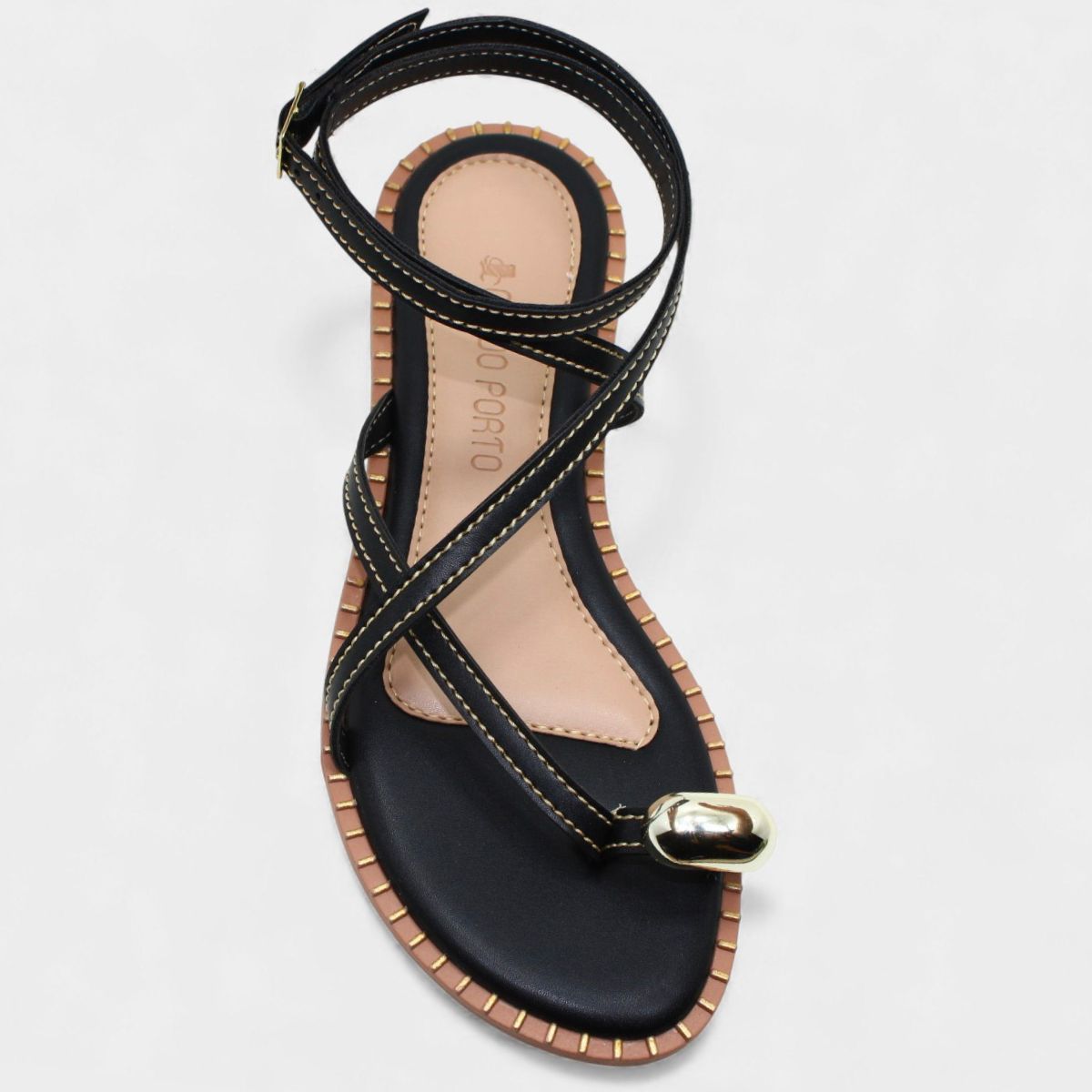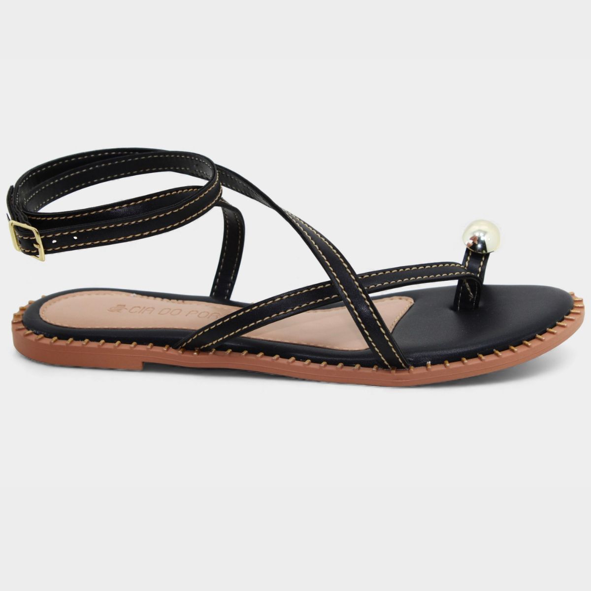 Rasteira Cia do Porto Amarração Detalhes Feminina - Preto