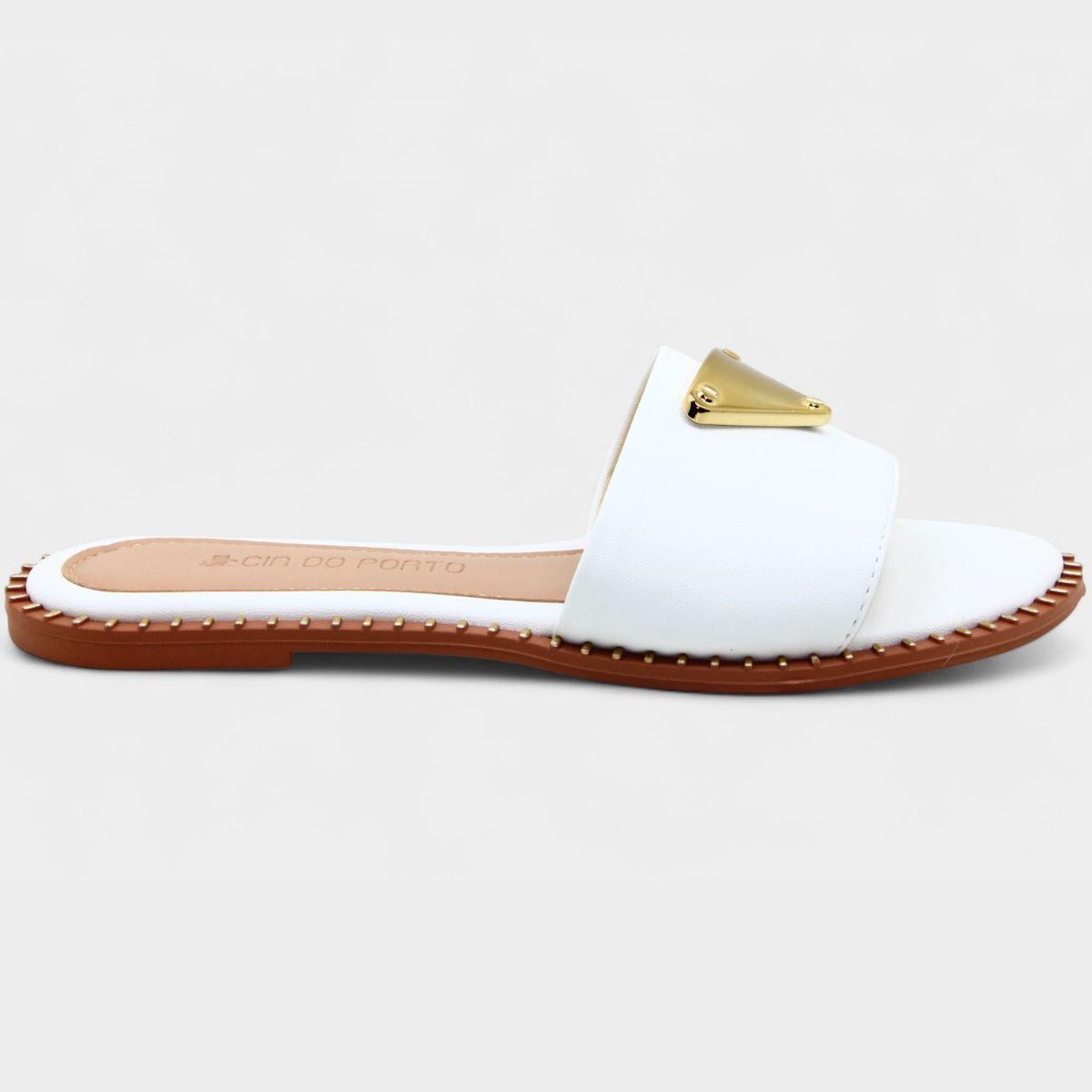 Rasteira Cia do Porto Estilo Dourado Feminina - Branco
