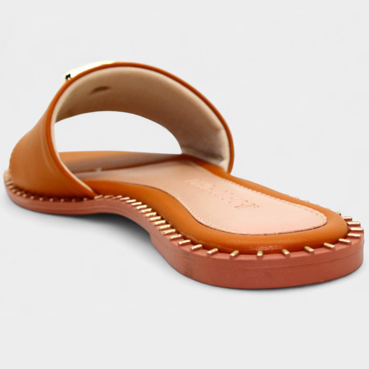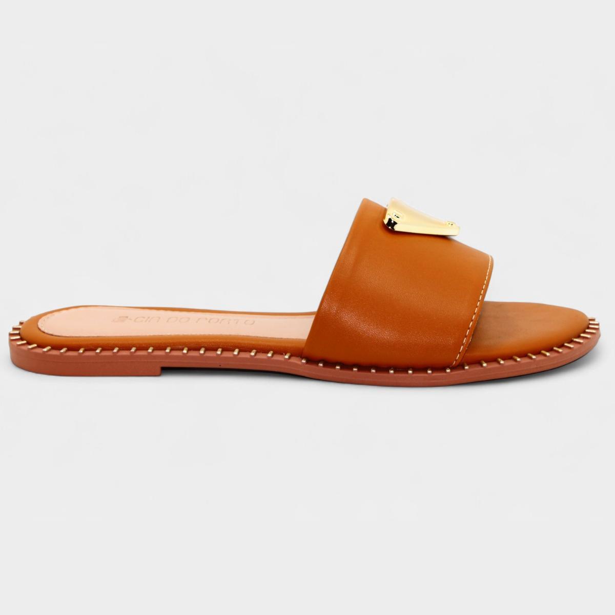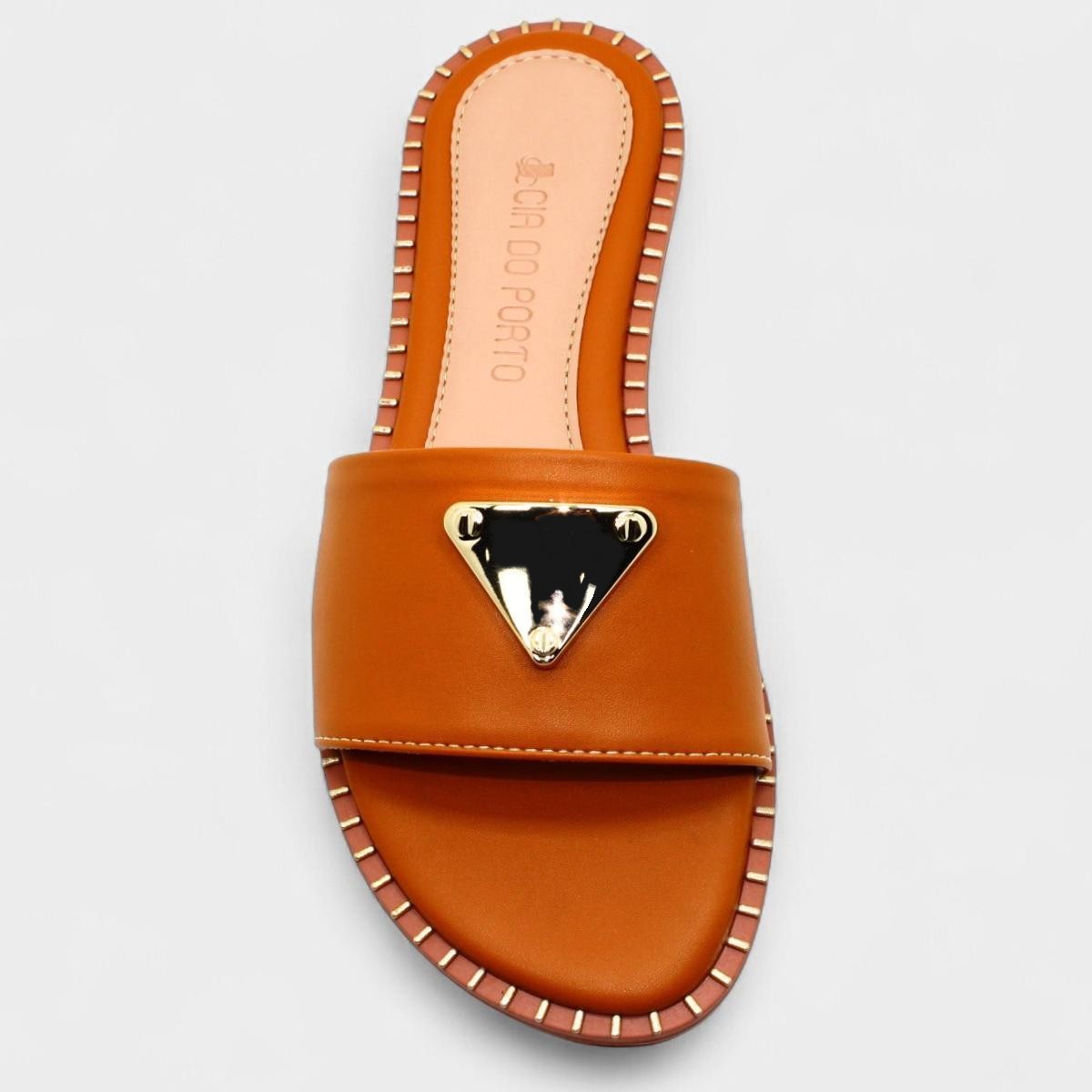 Rasteira Cia do Porto Estilo Dourado Feminina - Caramelo