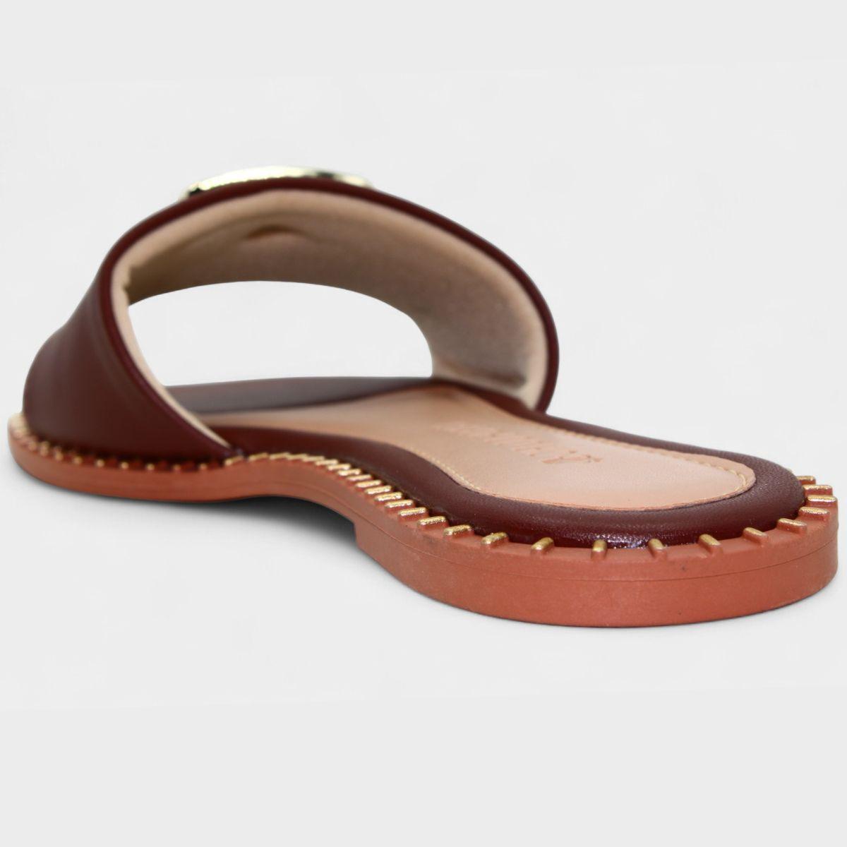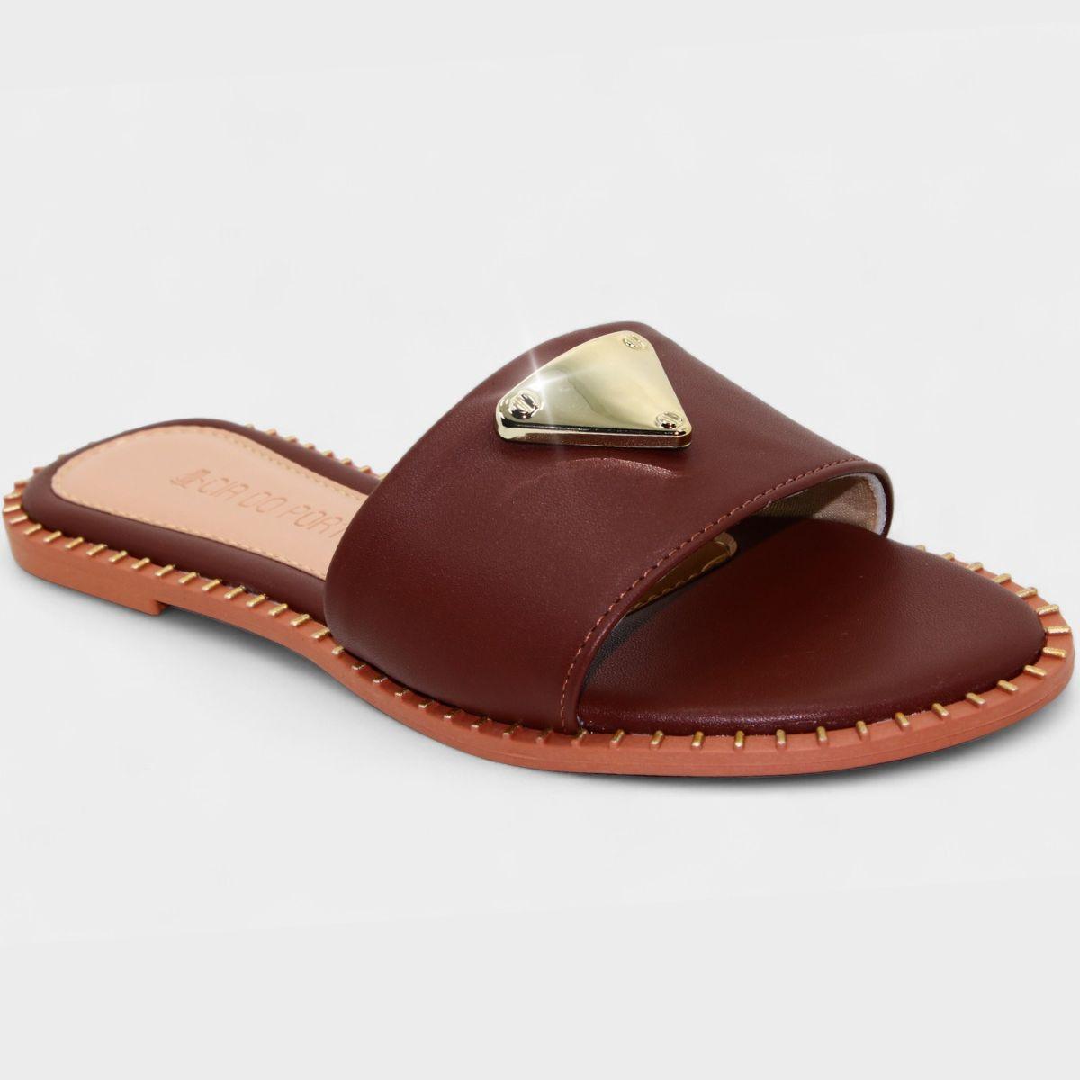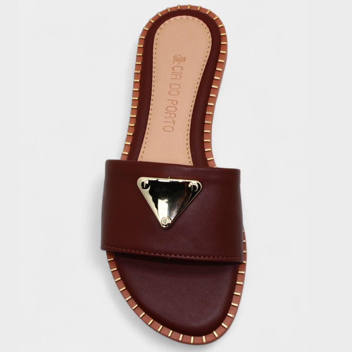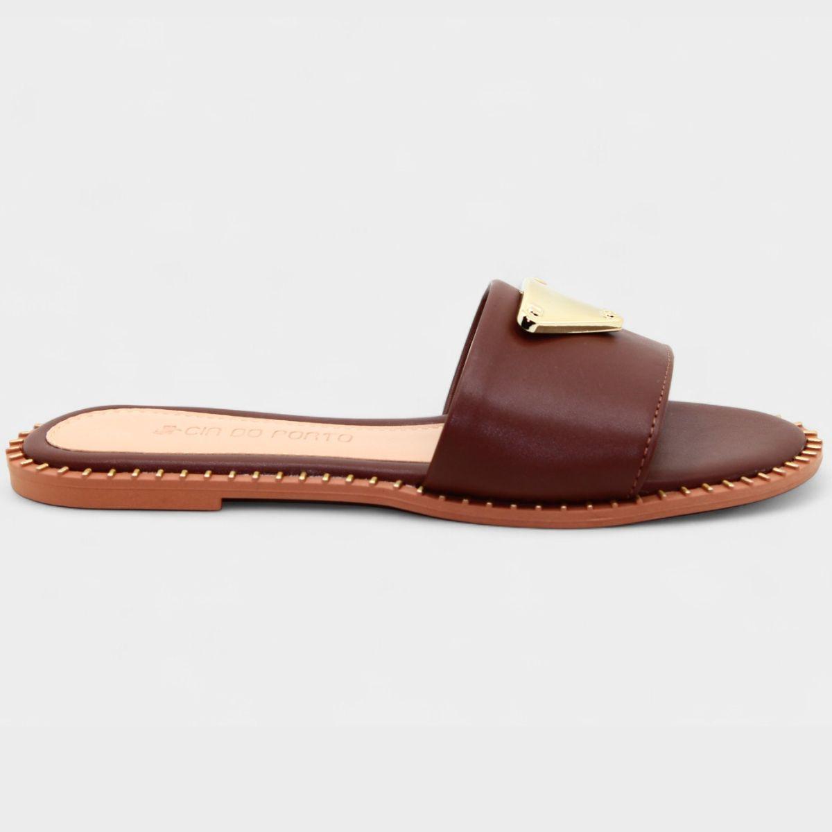 Rasteira Cia do Porto Estilo Dourado Feminina - Marrom Escuro