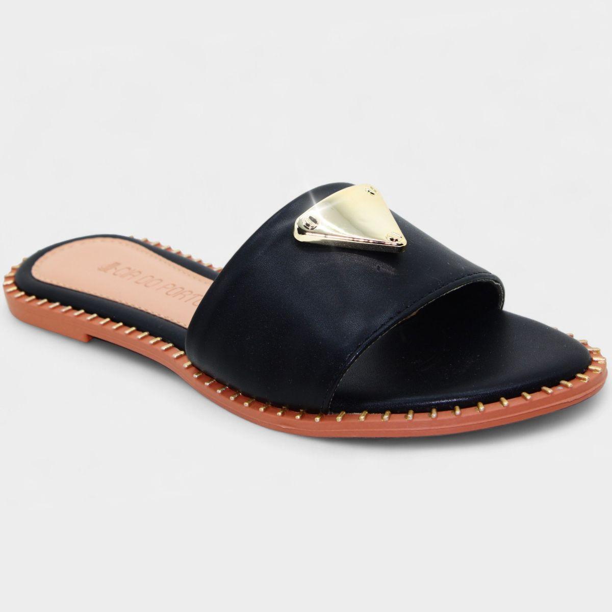 Nome:Rasteira Cia do Porto Estilo Dourado Feminina - Preto