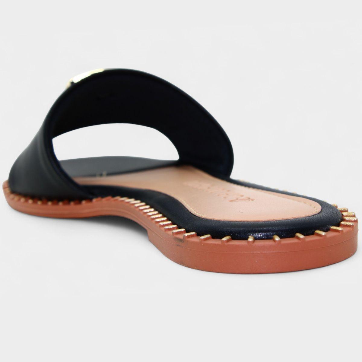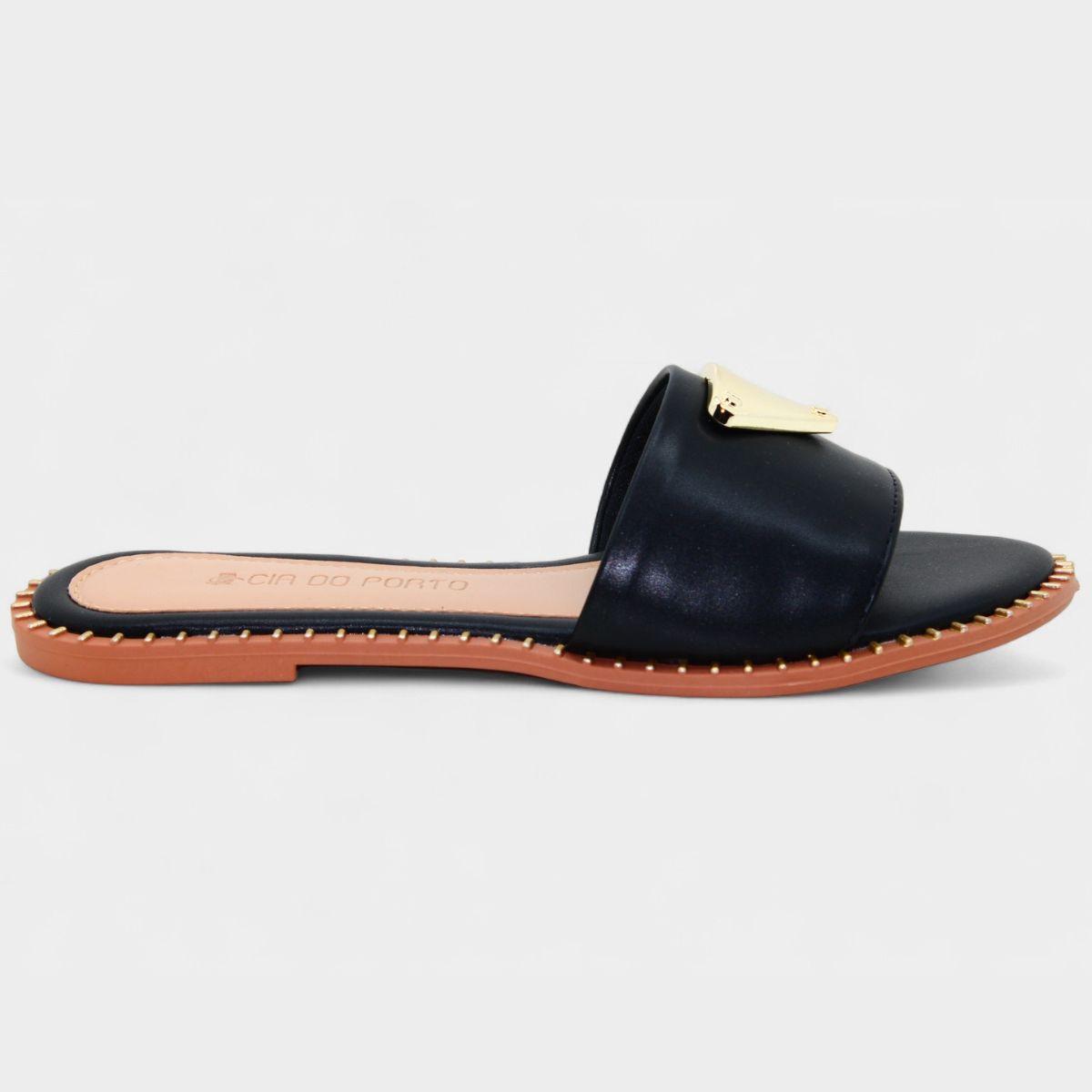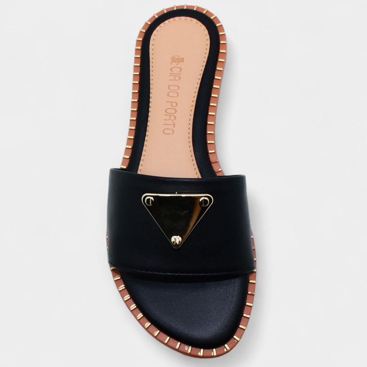 Rasteira Cia do Porto Estilo Dourado Feminina - Preto