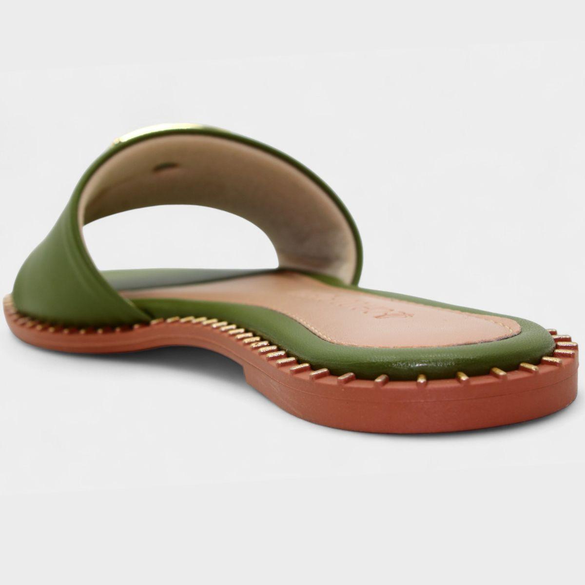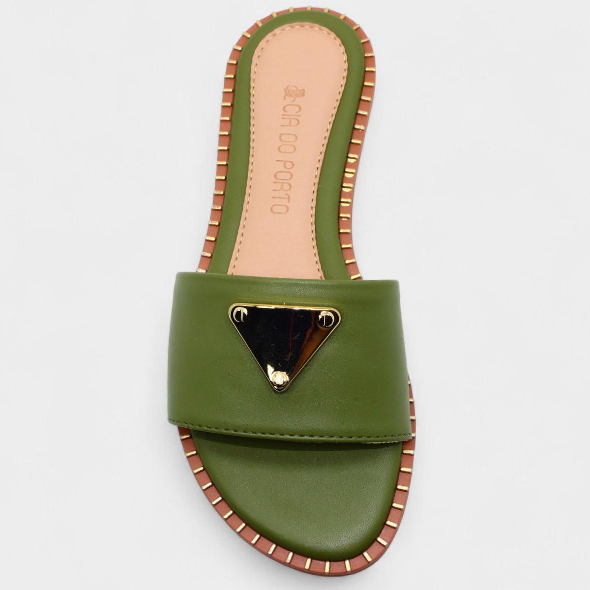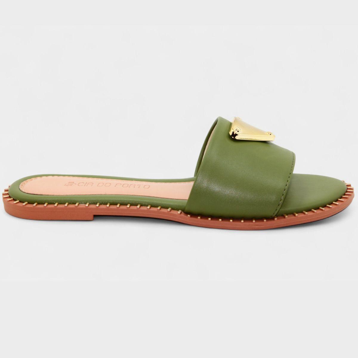 Nome:Rasteira Cia do Porto Estilo Dourado Feminina - Verde Oliva