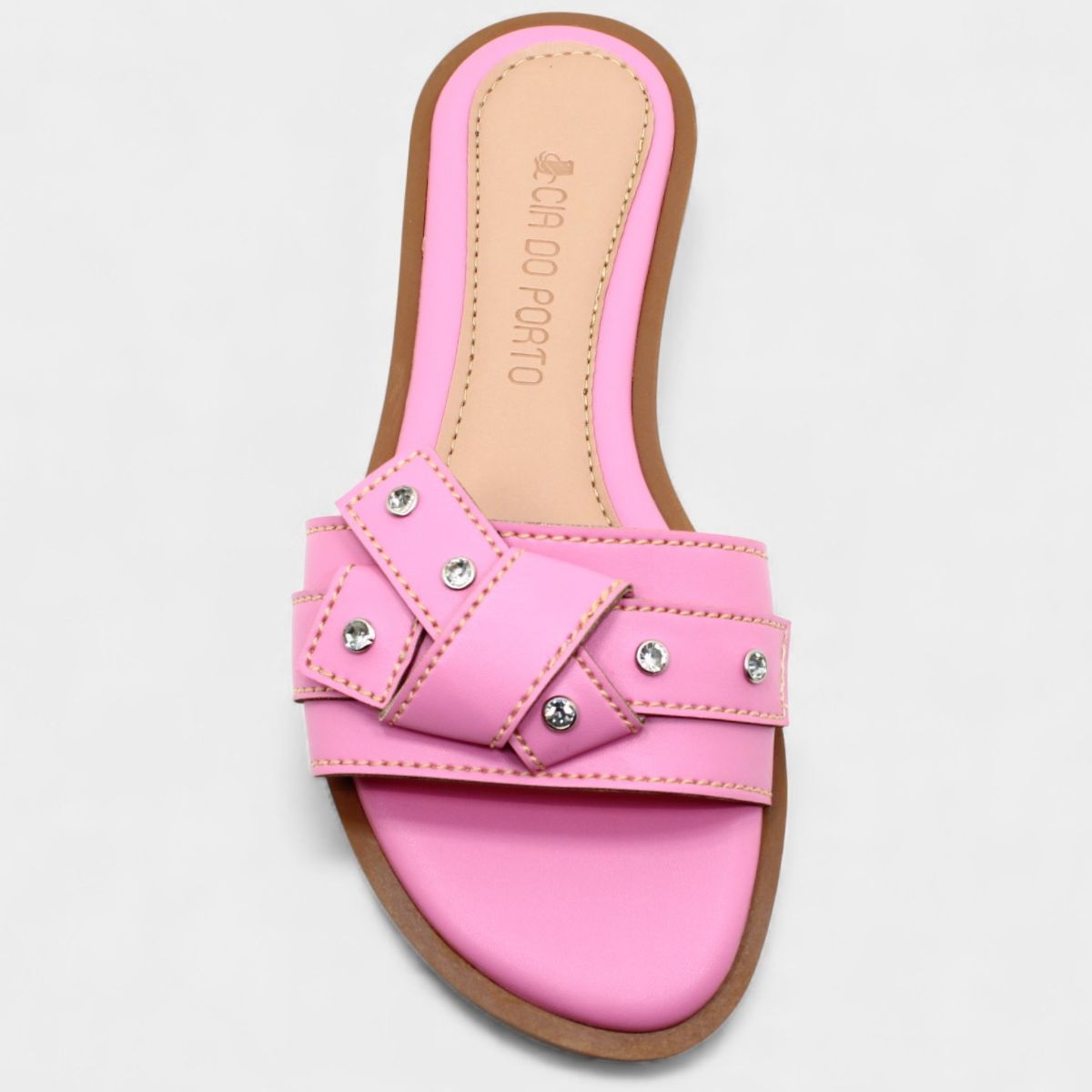 Rasteira Cia do Porto Nó Strass Feminina - Rosa