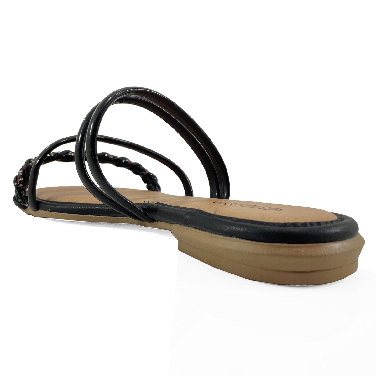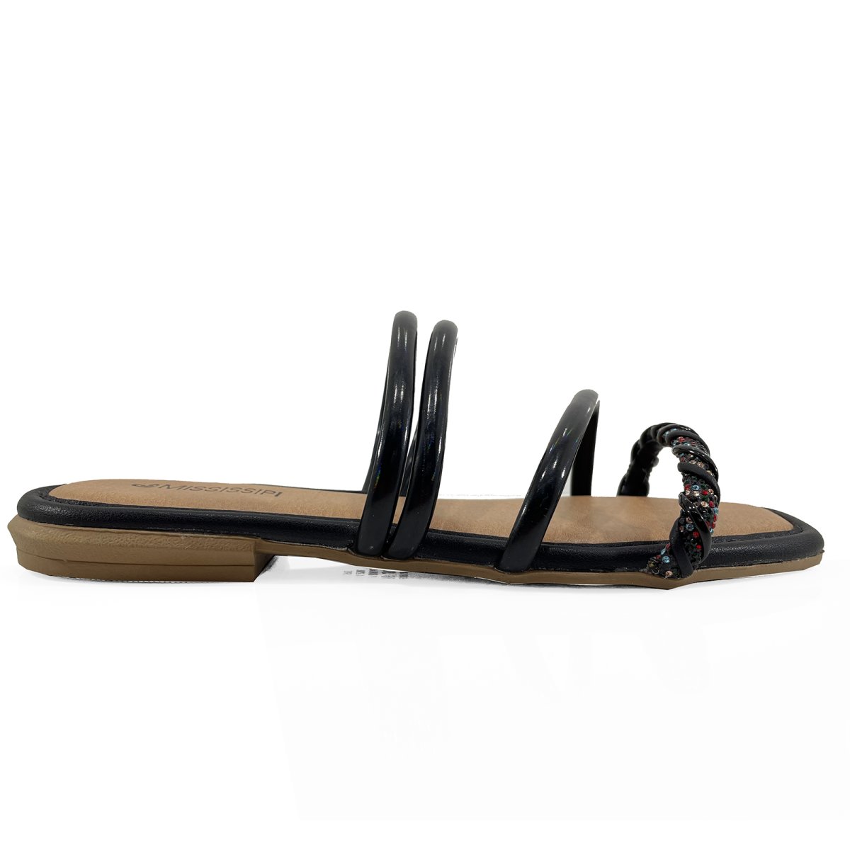 Rasteira Mississipi Tiras Strass Colorido - Preto
