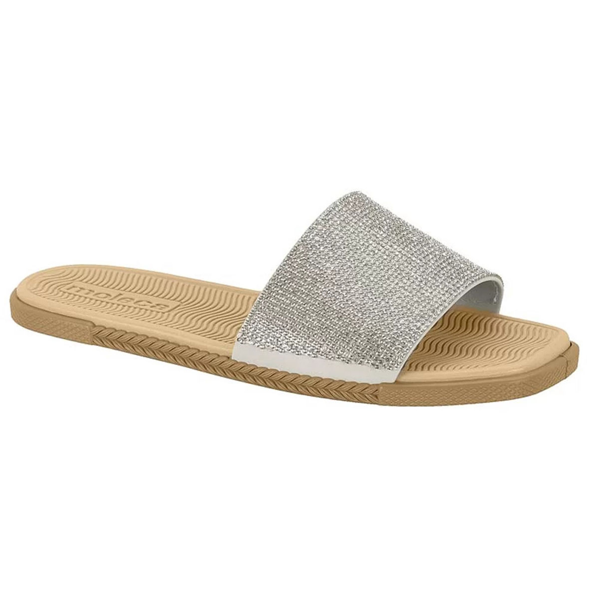 Rasteira Moleca Slide Strass Feminino - Branco Off