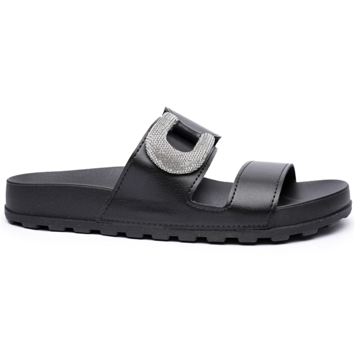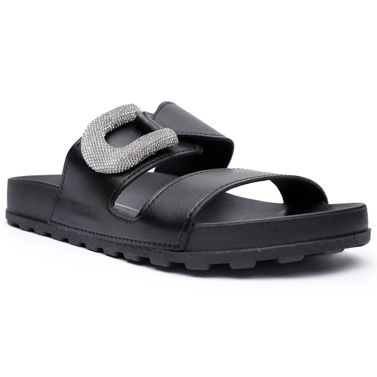 Rasteira Moleca Tratorada Strass Feminina - Preto
