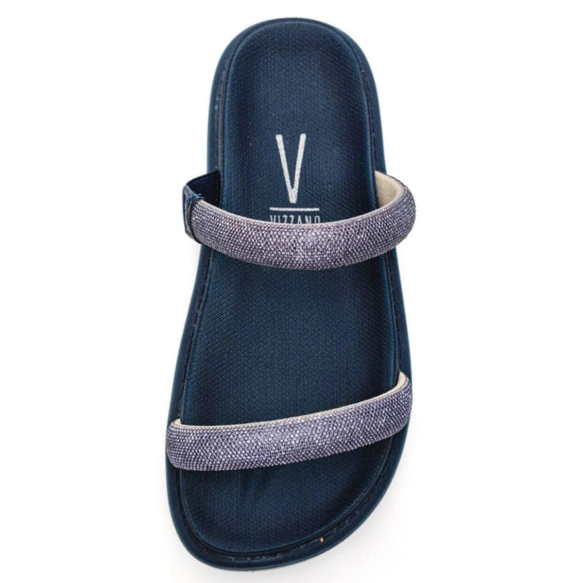 Nome:Rasteira Vizzano Flatform Strass Hotfix - Marinho