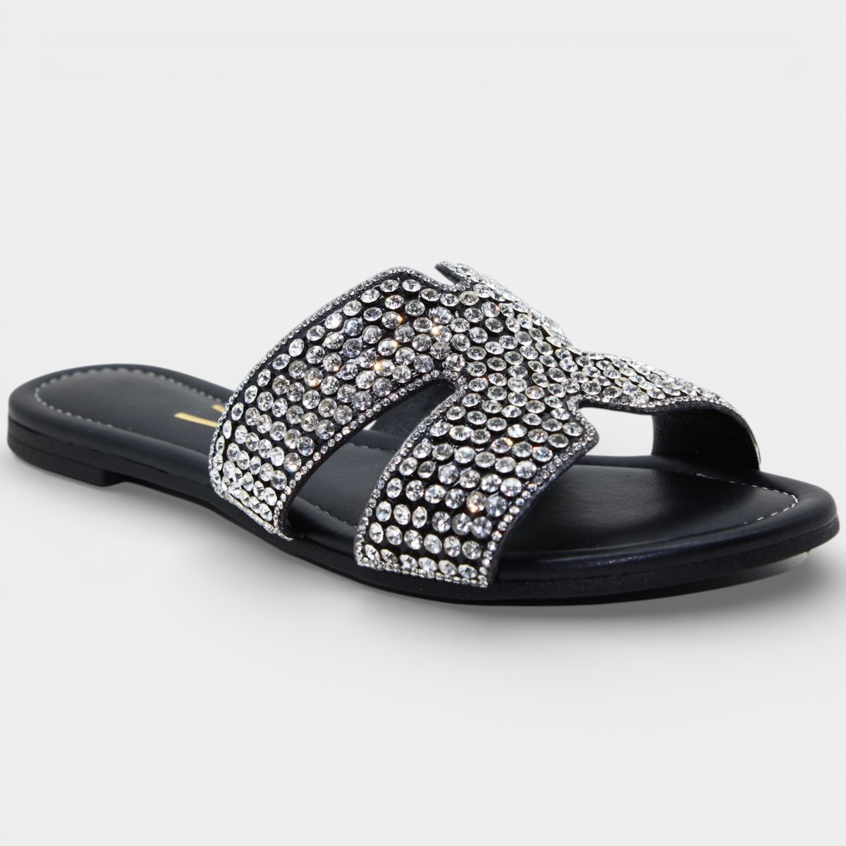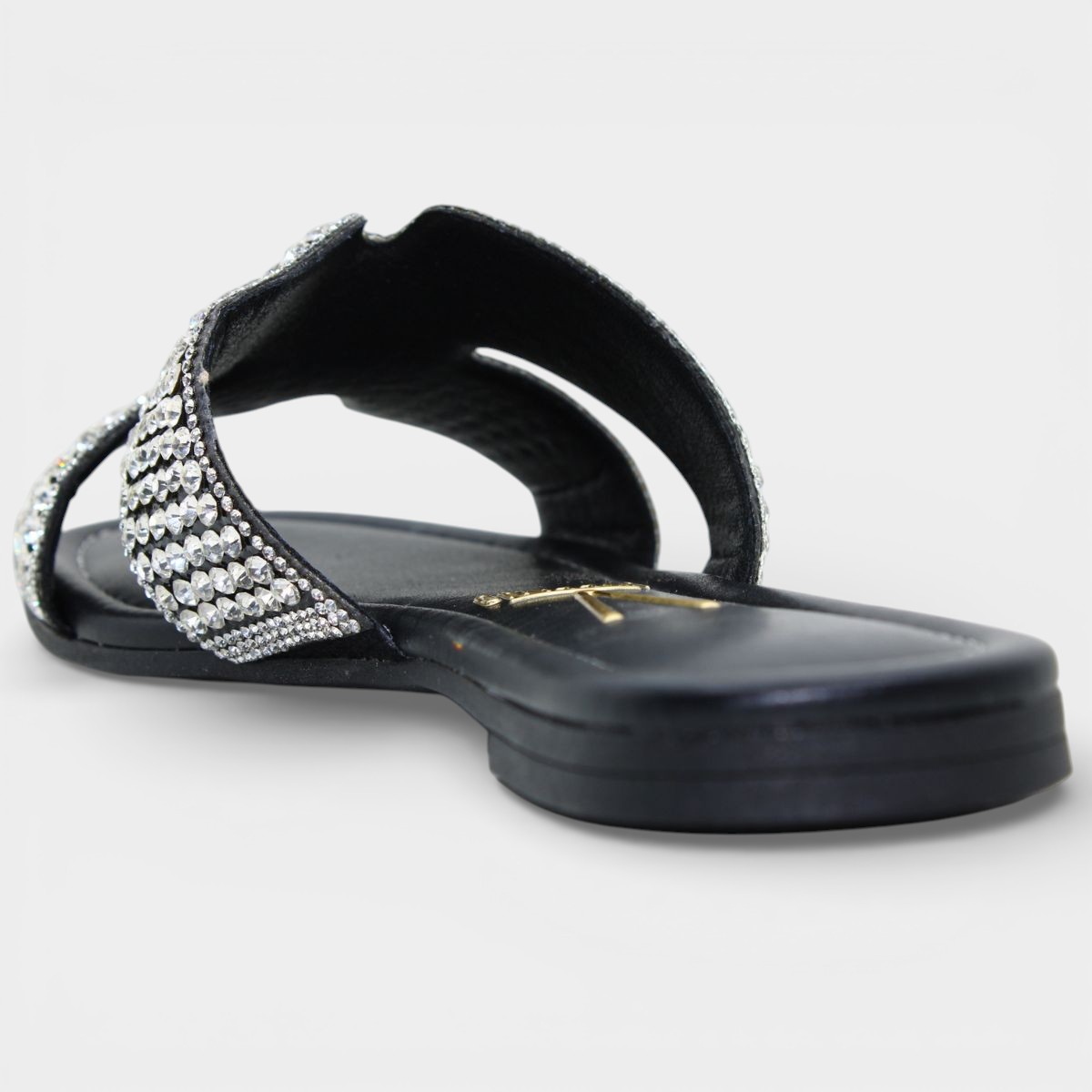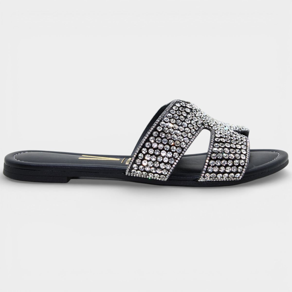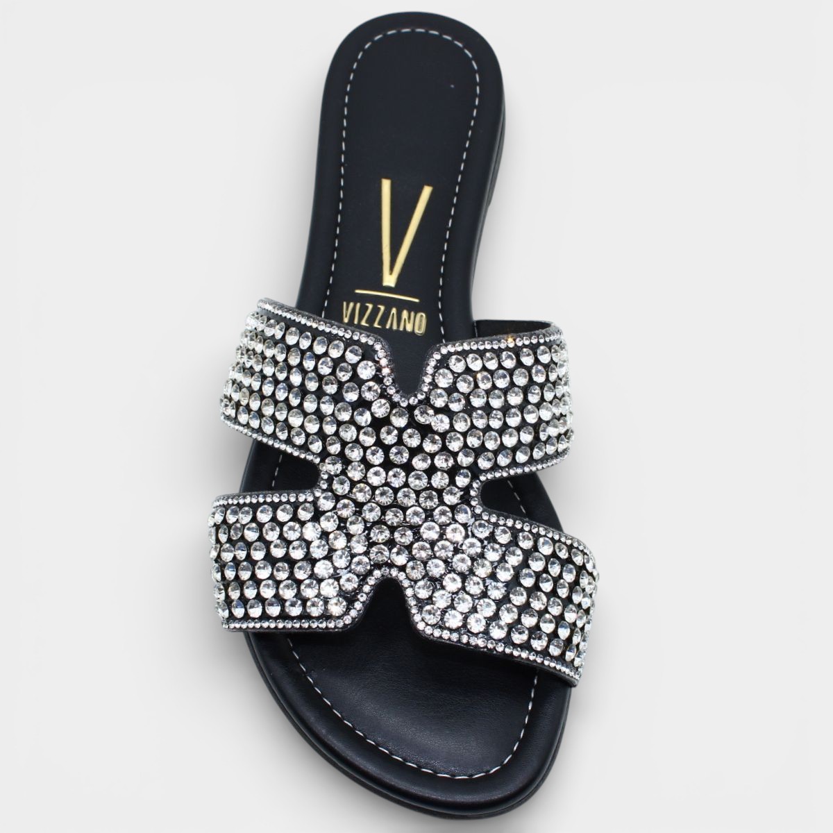 Nome:Rasteira Vizzano H Strass Feminina - Preto