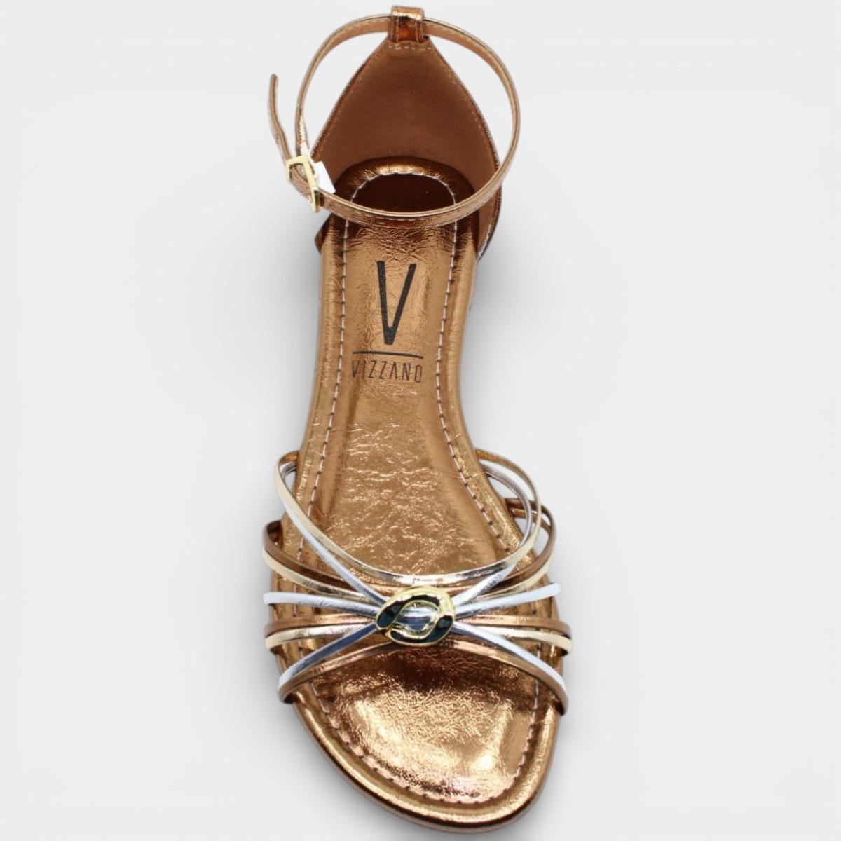 Rasteira Vizzano Tiras Cruzadas Metalizada Feminina - Bronze