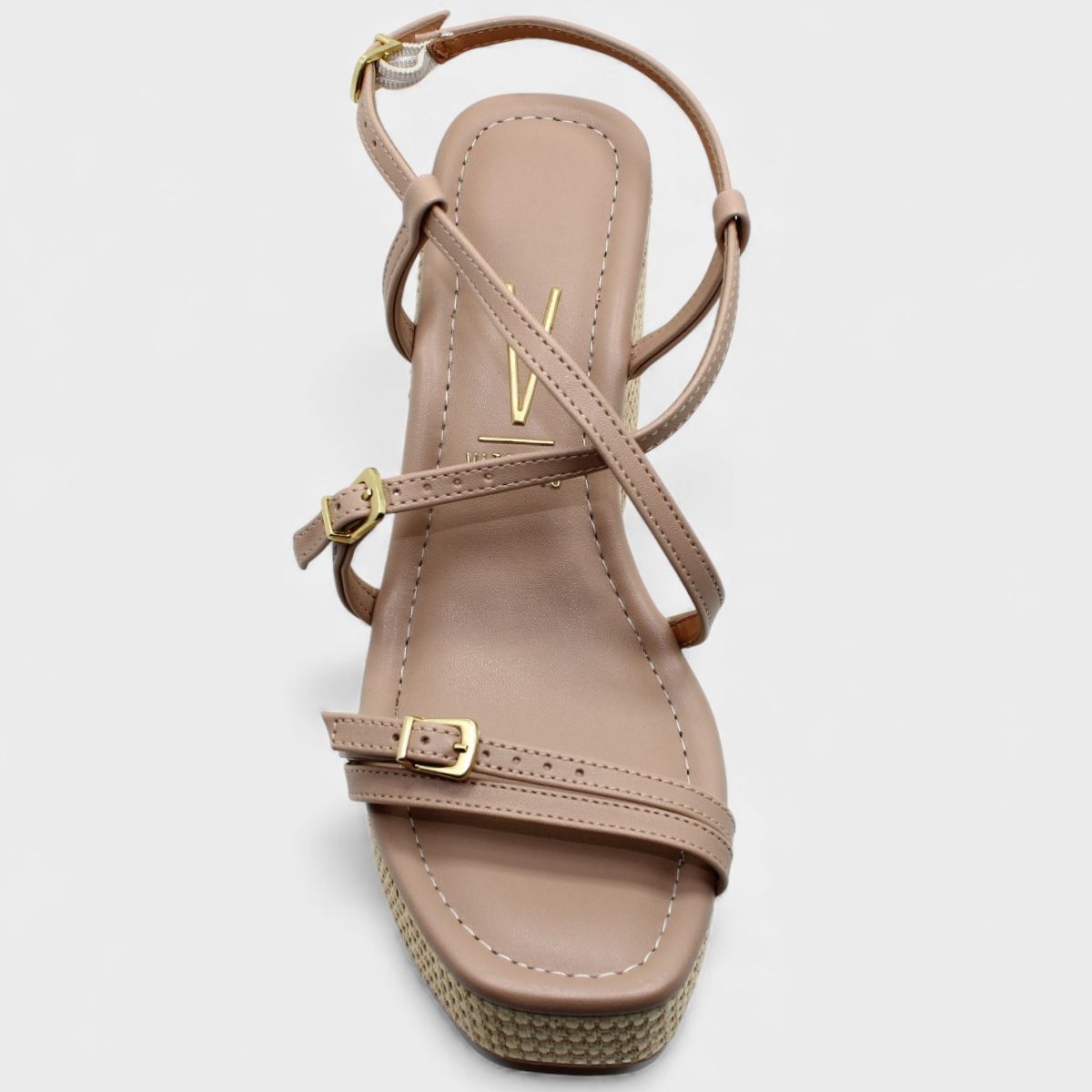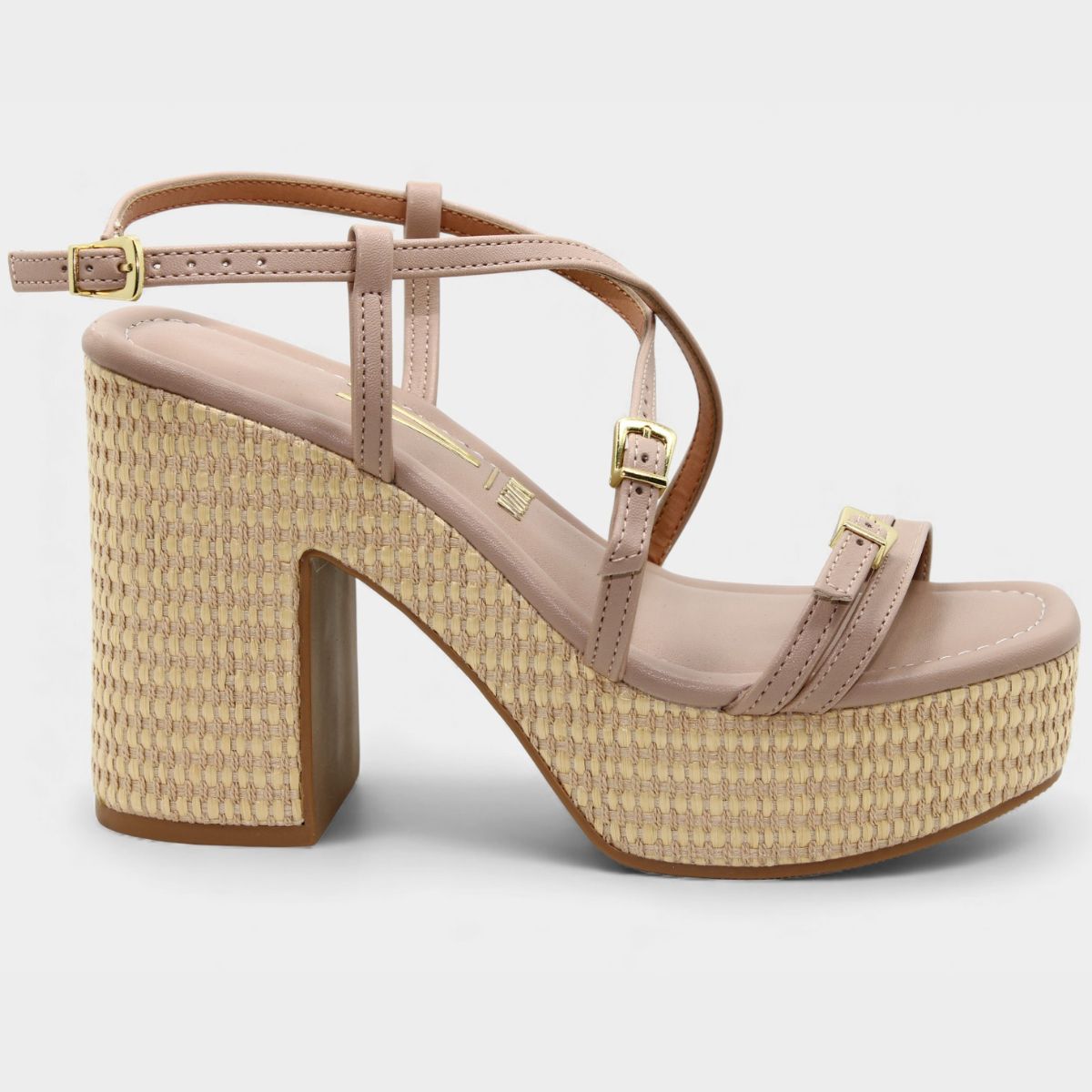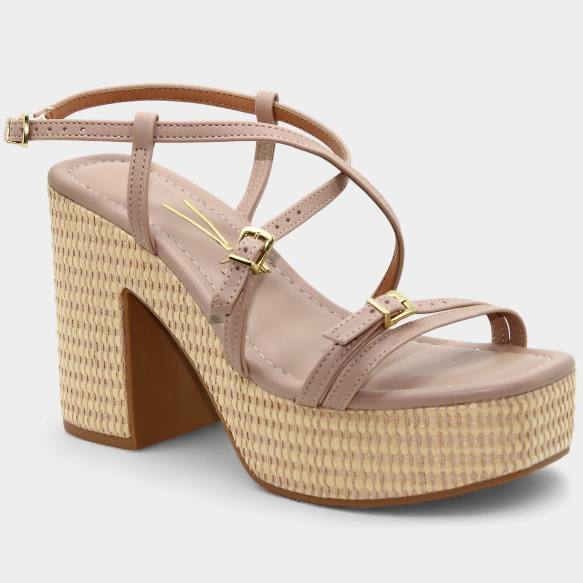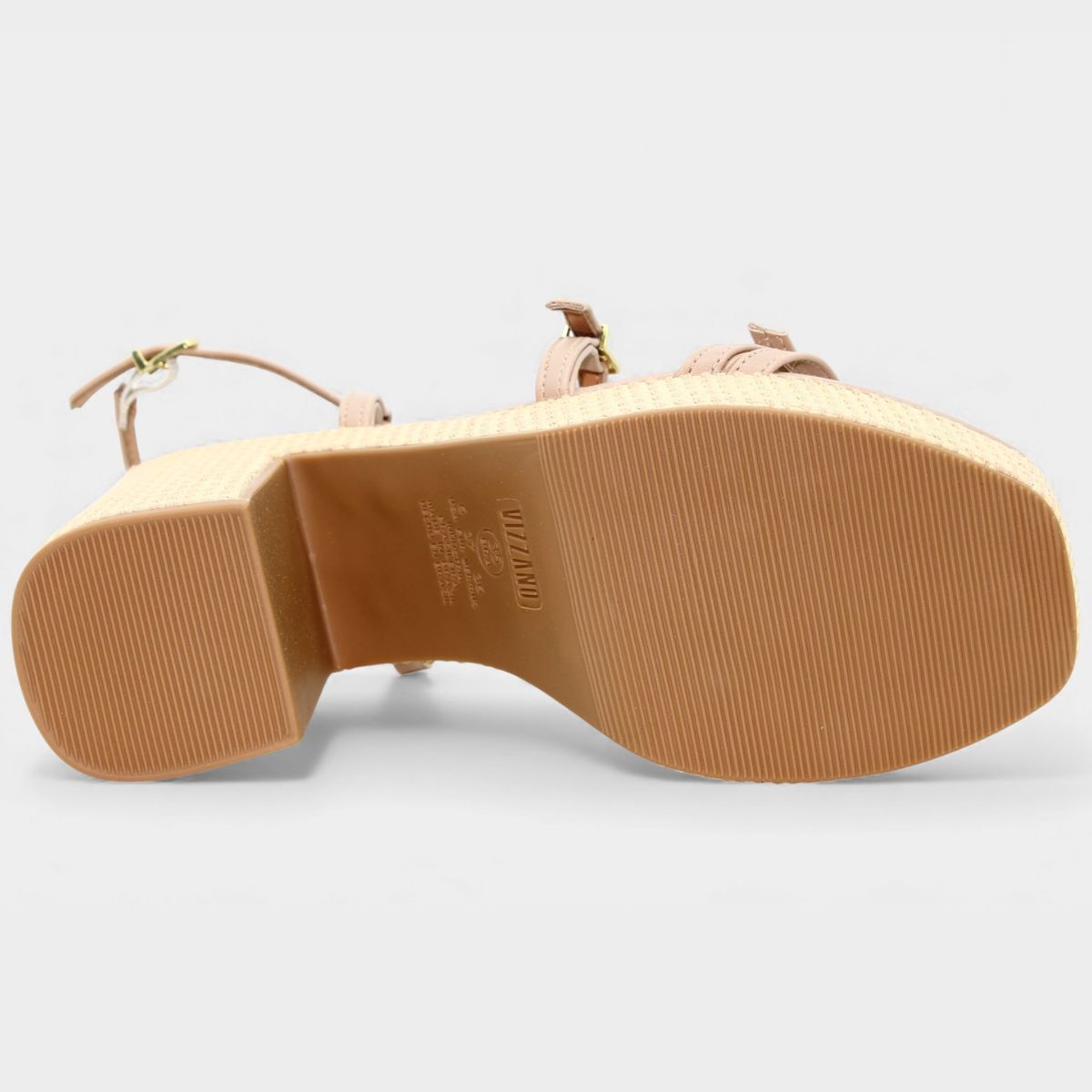 Sandália Anabela Vizzano Salto Grosso Tiras Cruzadas Fivelas Feminino - Bege