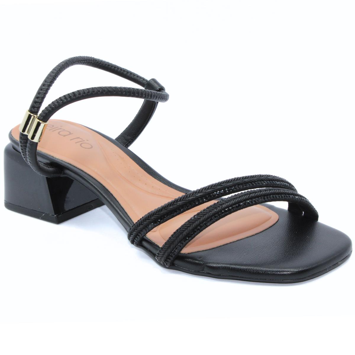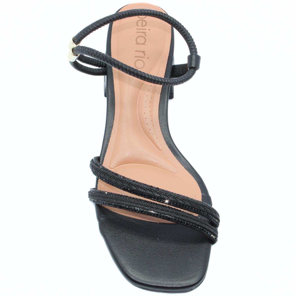 Sandália Beira Rio Tira Strass Salto Baixo Feminina - Preto