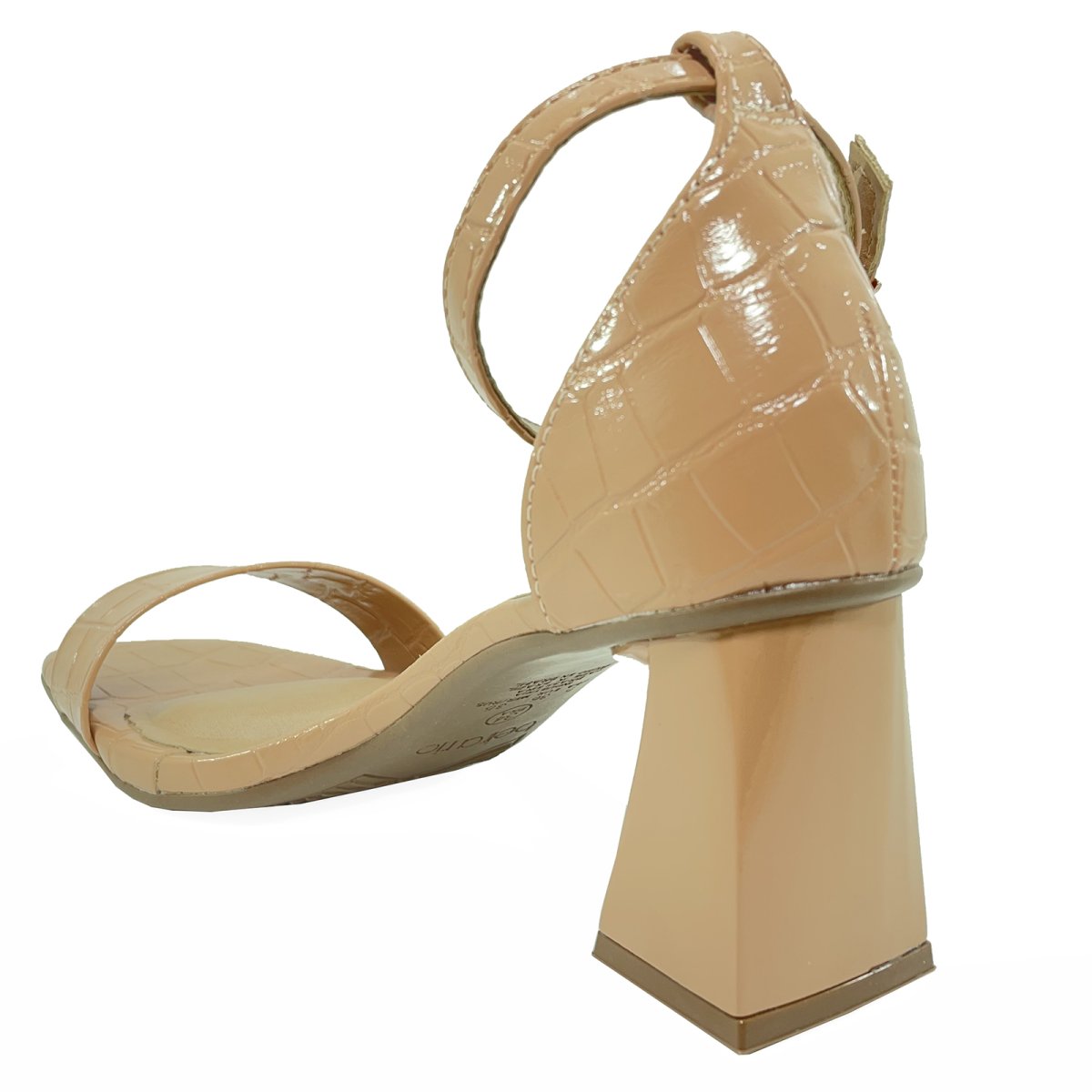 Sandália Beira Rio Verniz Croco Salto Bloco - Nude