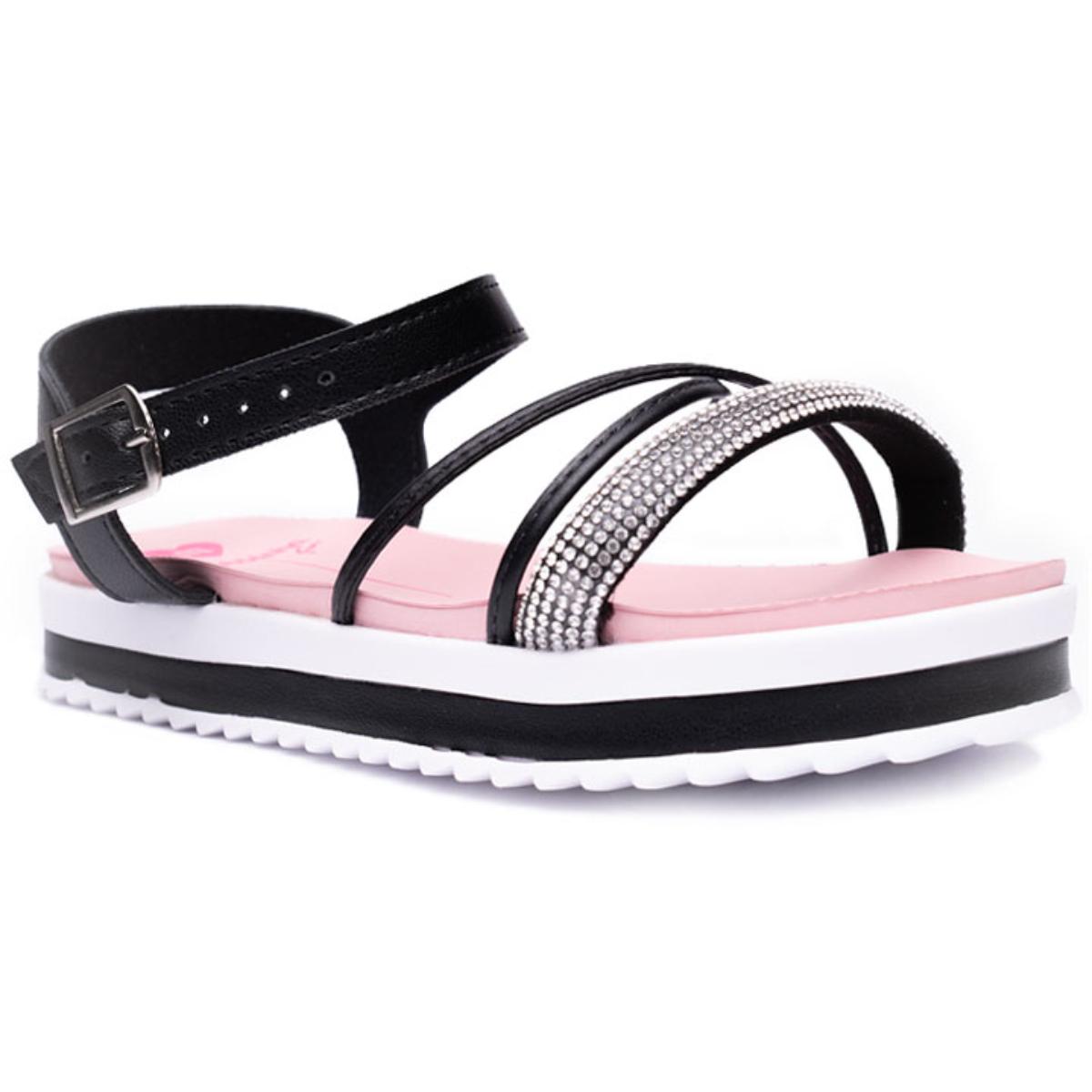 Sandália Infantil Molekinha Flatform Strass - Rosa e Preto
