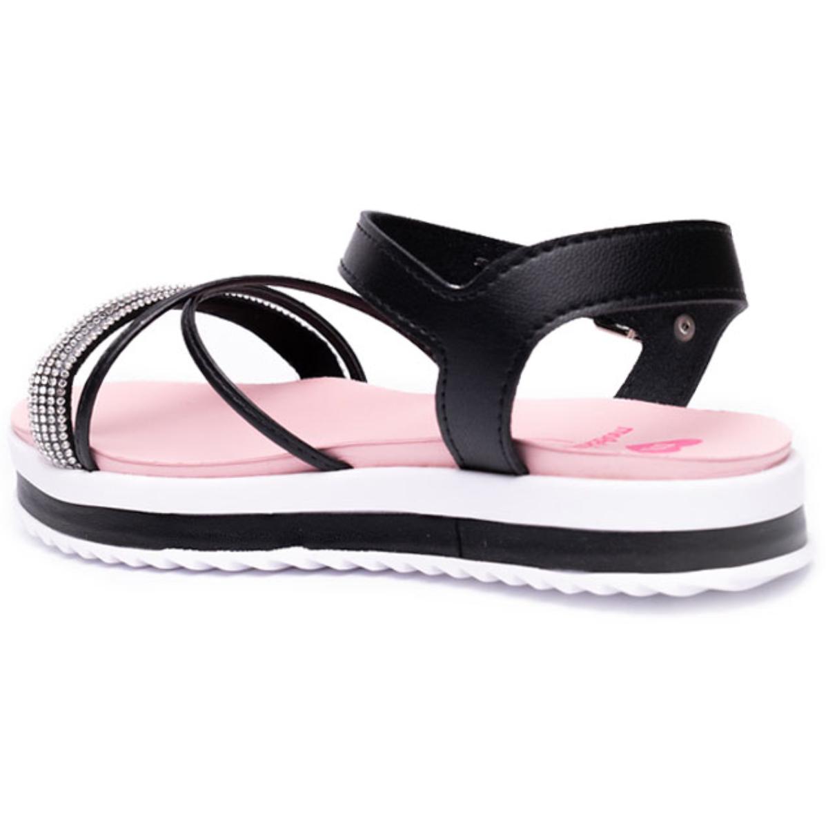 Nome:Sandália Infantil Molekinha Flatform Strass - Rosa e Preto