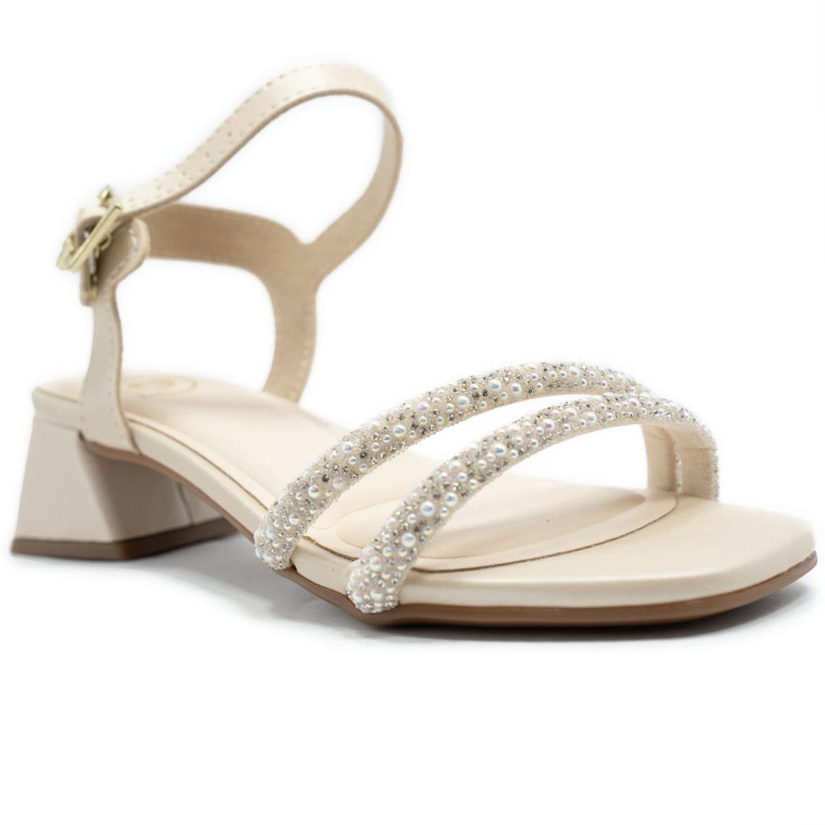 Sandália Infantil Molekinha Pedraria Salto Bloco - Off White