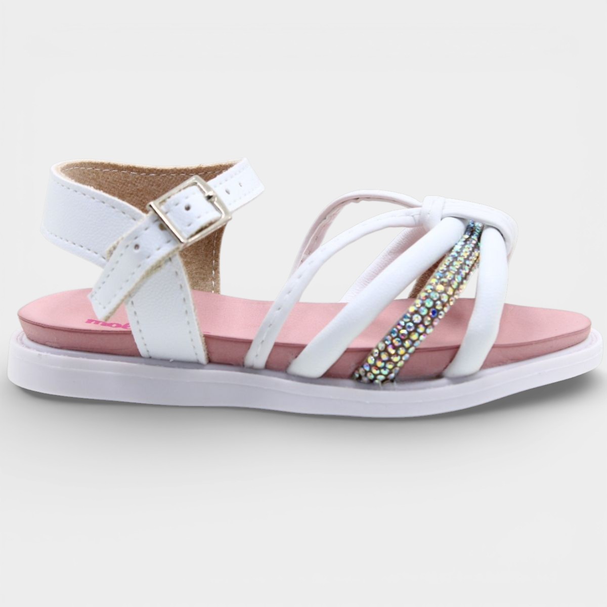 Nome:Sandália Molekinha Strass Tiras Baby - Branco