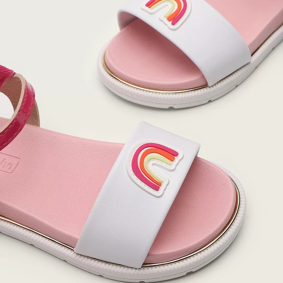 Sandália Molekinha Arco-Íris Baby - Branco e Rosa