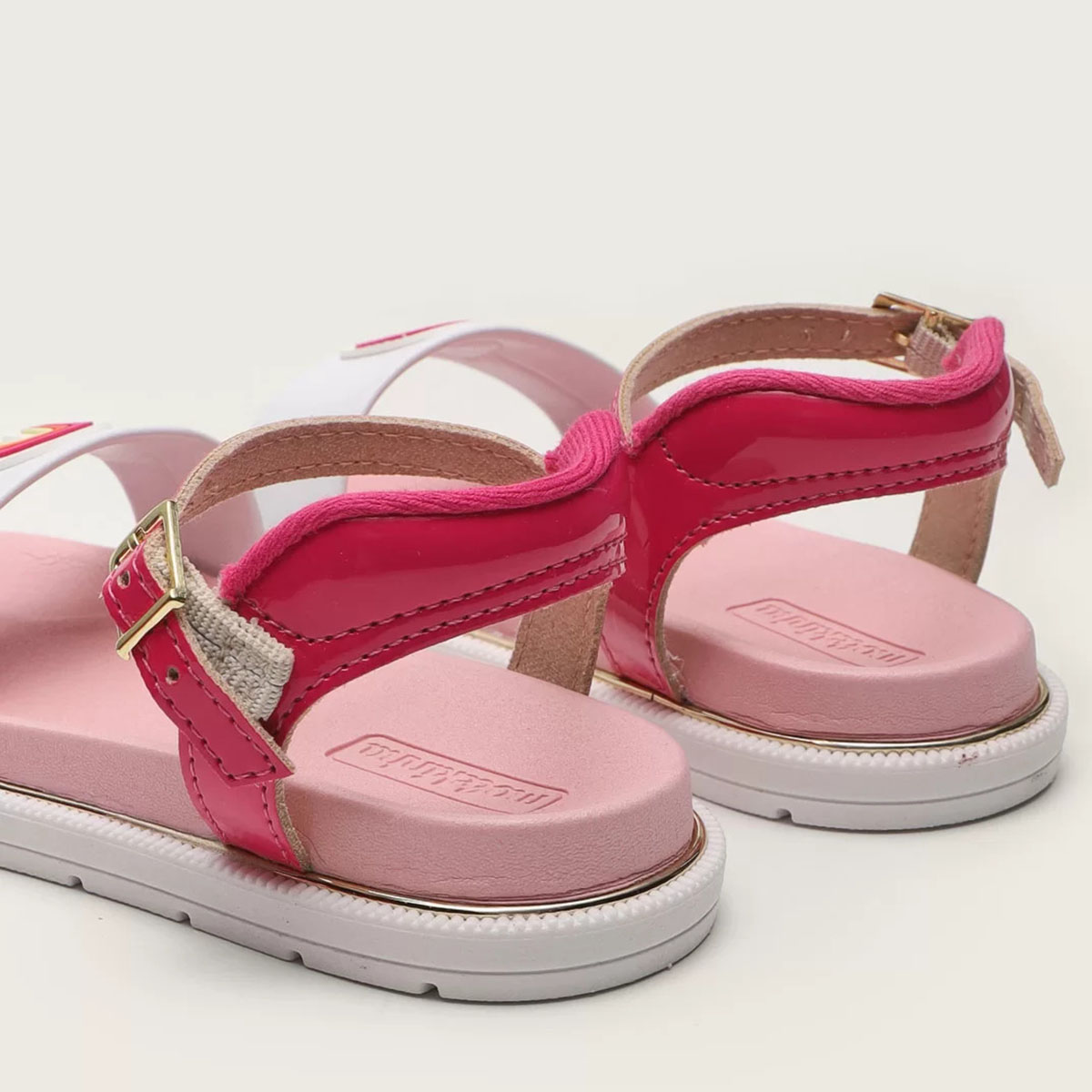 Nome:Sandália Molekinha Arco-Íris Baby - Branco e Rosa